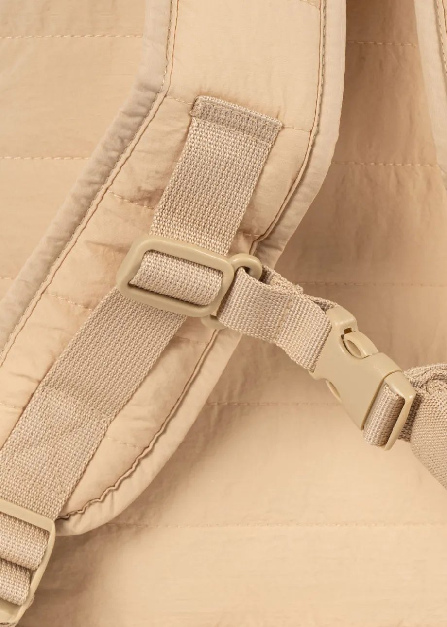 Blød og let rygsæk med en praktisk flaskelomme. forlomme og brystrem. der støtter ryggen. Fremstillet af Yderlag: 100 % nylon For: 100 % polyester Indvendig polstring: 100 % po