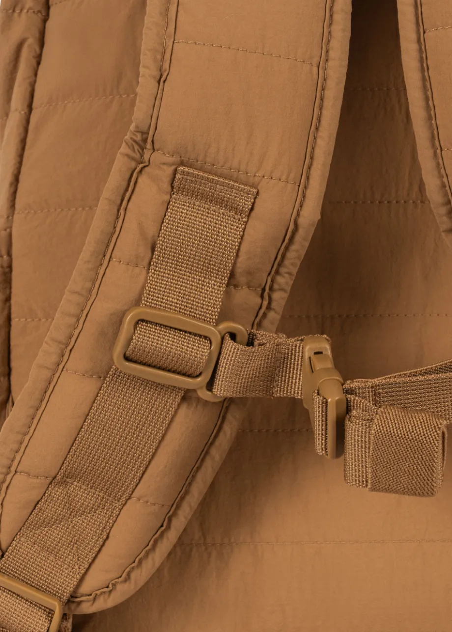 Blød og let rygsæk med en praktisk flaskelomme. forlomme og brystrem. der støtter ryggen. Fremstillet af Yderlag: 100 % nylon For: 100 % polyester Indvendig polstring: 100 % po