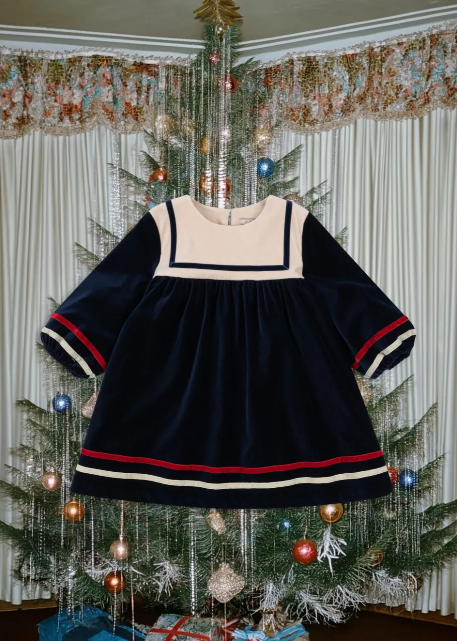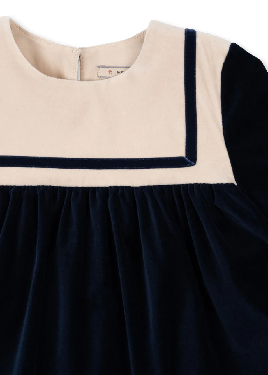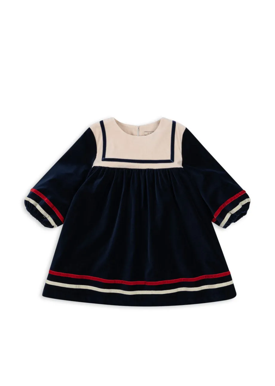 Sømandskjole med en klassisk og løs pasform. Bemærk. at denne kjole skal renses. Lavet af 98 % økologisk bomuld og 2 % elastan Dette produkt indeholder 100 % OCS-certificeret b
