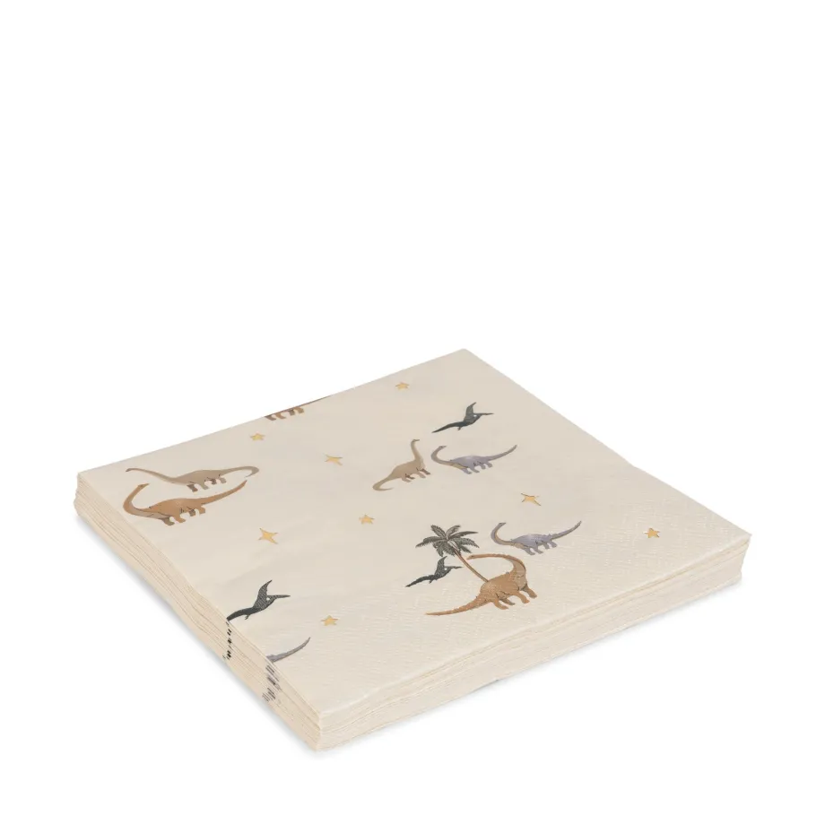 Papirsservietter med dekorativt dinosaurmotiv. H: 1.5 x B: 16.5 x L: 16.5 cm Dette produkt er fremstillet af FSC™-certificeret og andet materiale. Licensnummer: FSC C177572