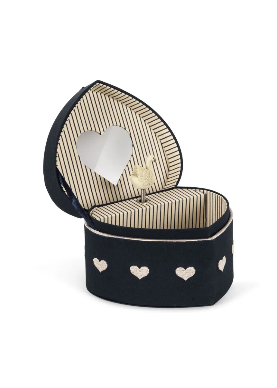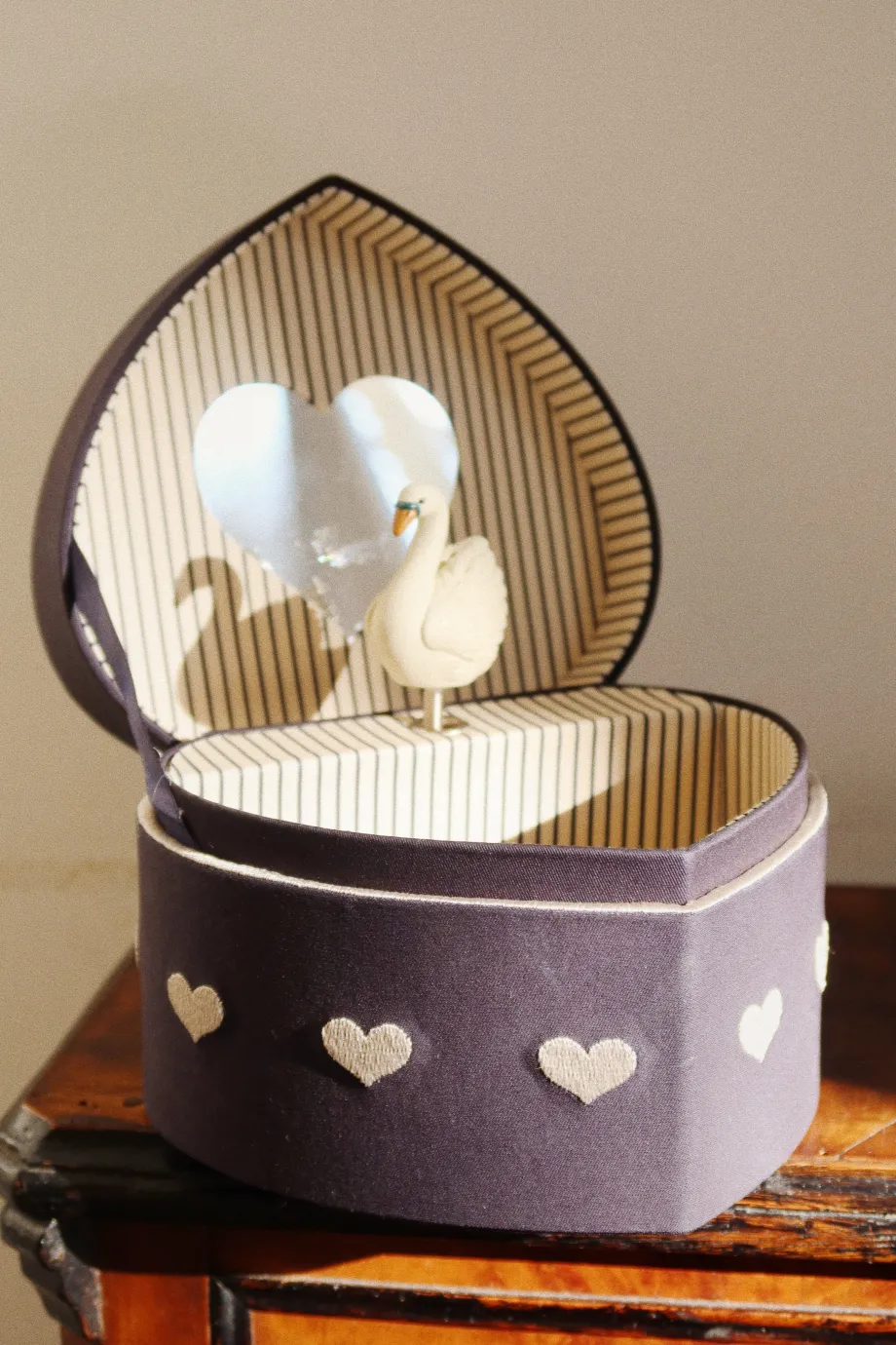 Magisk smykkeskrin. Når smykkeskrinet åbnes. begynder musikken at spille. og den lille ballerina drejer rundt. Lavet af: Bomuld. pap og polyresin. H: 9 cm x B: 15 cm x L: 13 cm. Fr