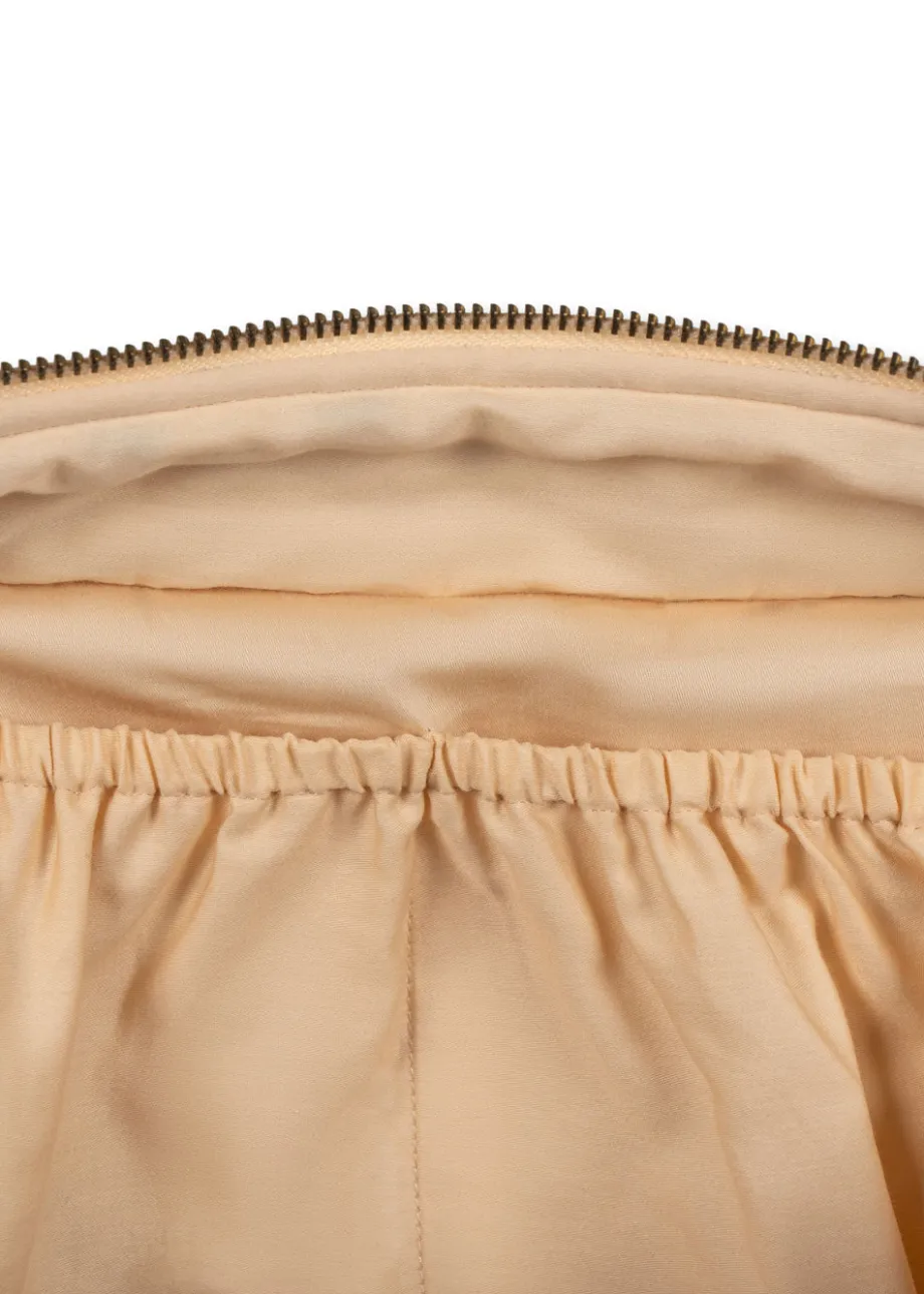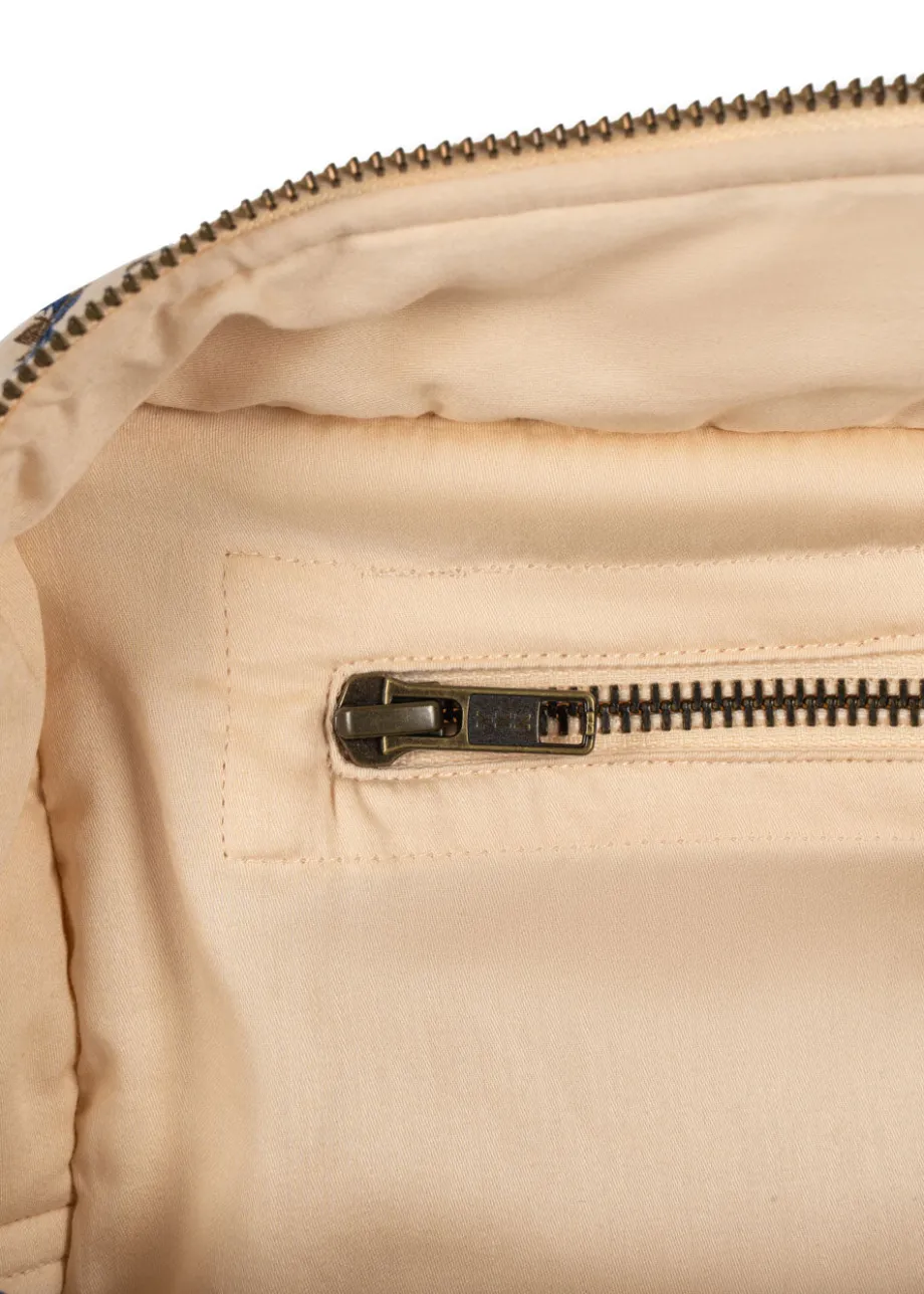 Vatteret toilettaske med en lille indvendig lomme. Yderstof og for er lavet af 100 % økologisk bomuld. og fyldet er lavet af 100 % polyester H: 29 cm x B: 18.5 cm x L: 11.5 cm