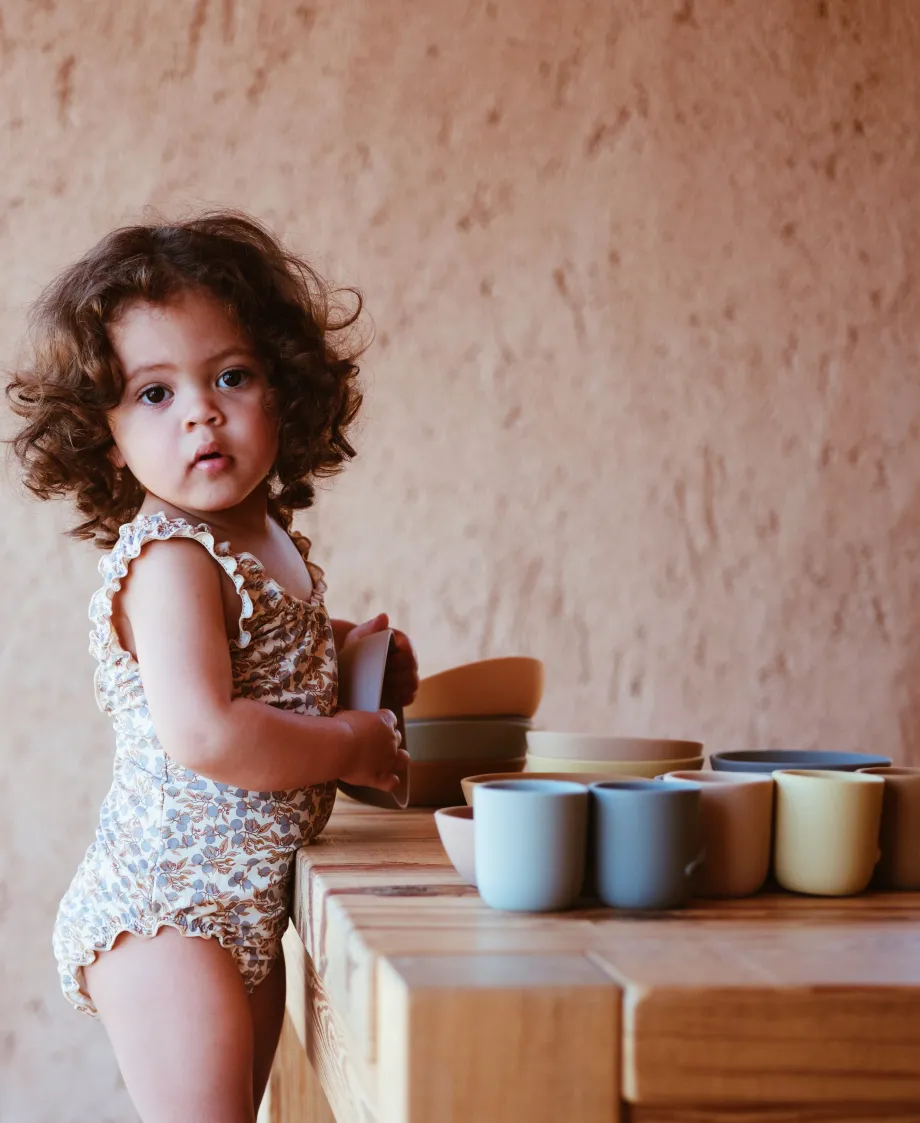 Kop- og tallerkensæt fremstillet af 100 % silikone. Tåler opvaskemaskine op til 100 °C. Tåler mikrobølgeovn. Temperatursikker: -40 °C til +230 °C ADVARSEL! Brug altid produktet u