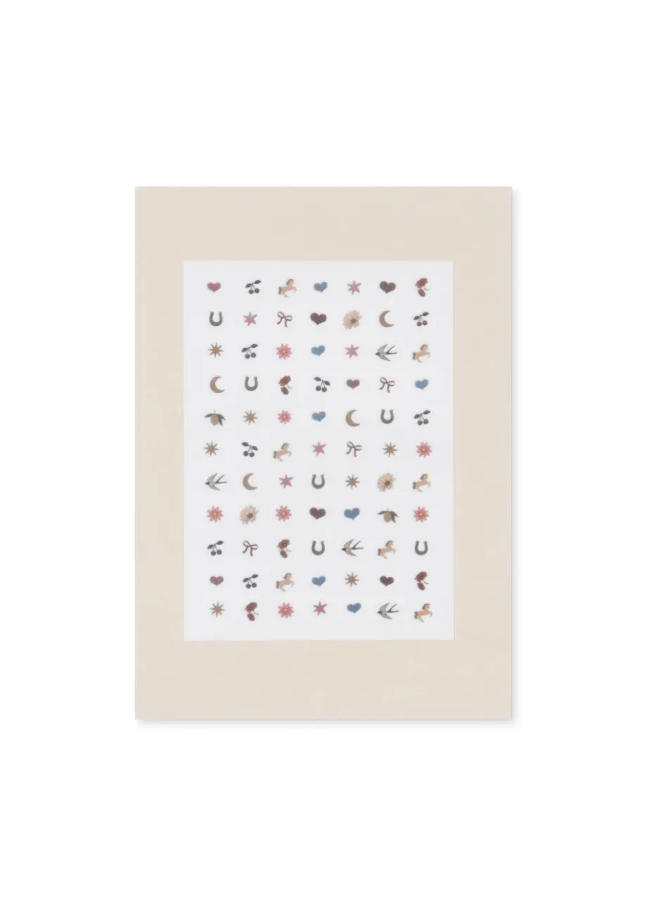 Stylist-sæt til kreative børn. Sættet leveres i en lille æske til dekorativ opbevaring. Indeholder: 30+ tatoveringer 50+ negleklistermærker 1 maske med similisten 1 ark med simil