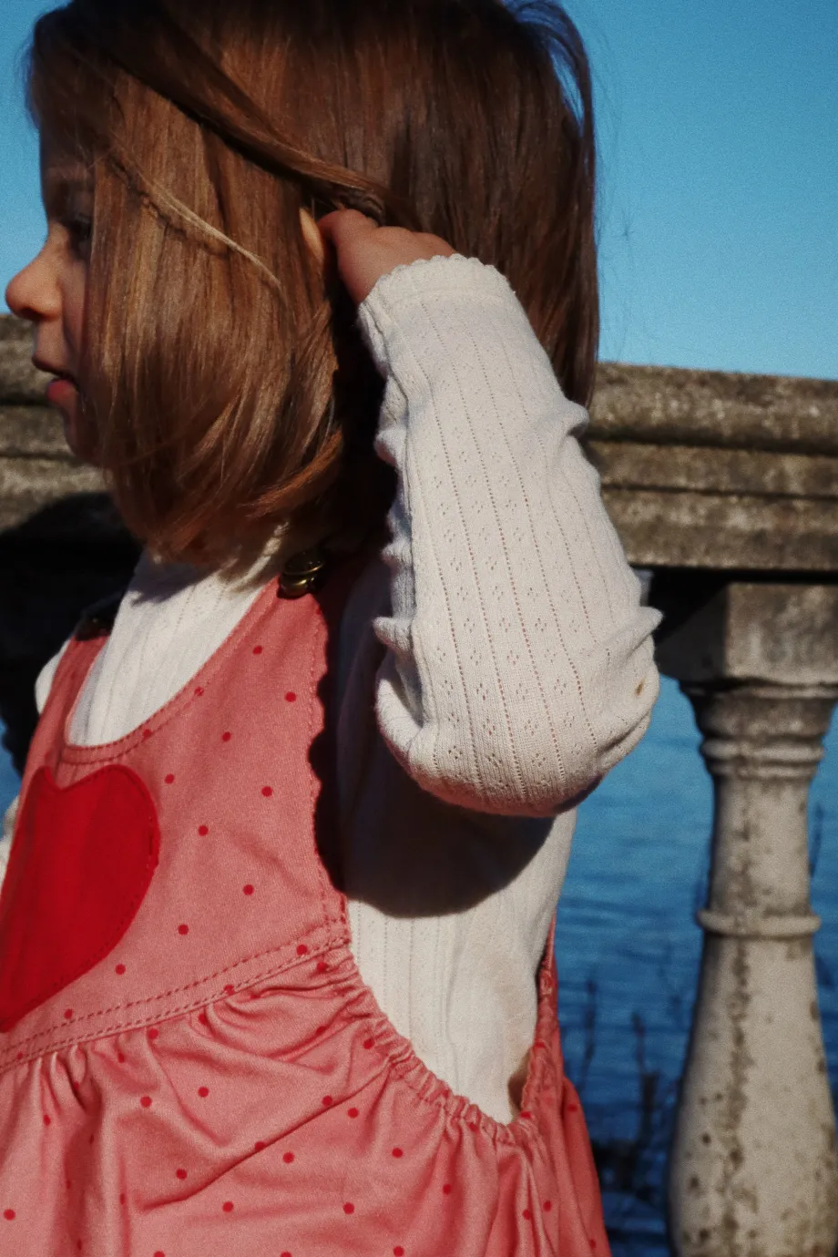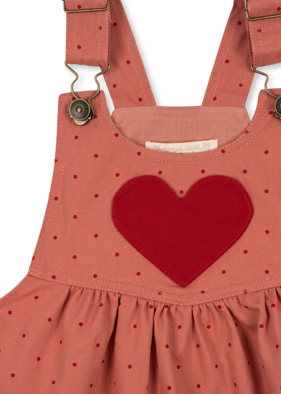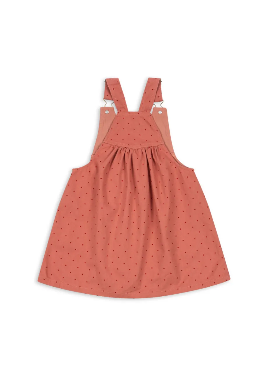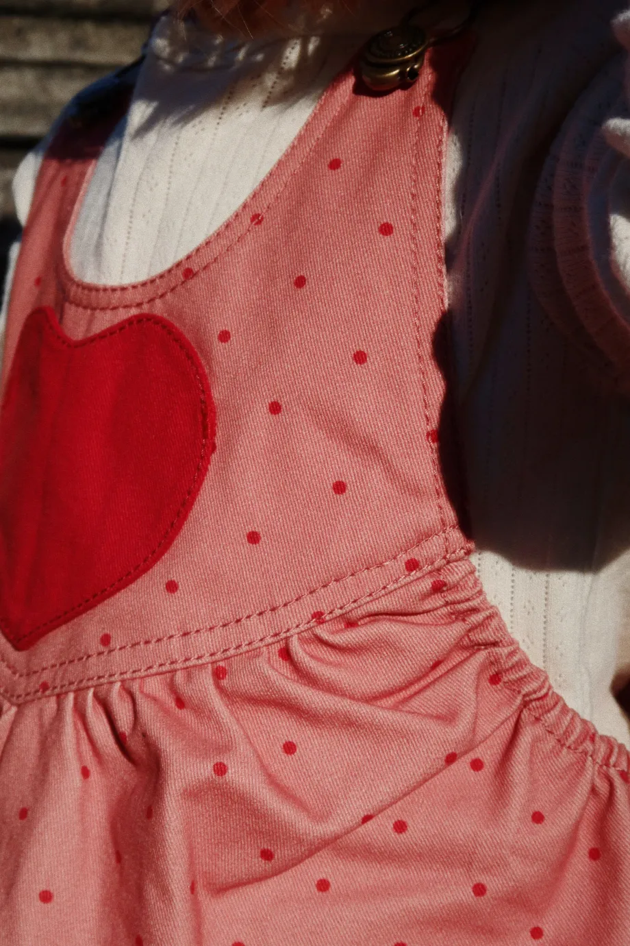 Kjole med seler i kraftig bomuld. Lavet af 100 % økologisk bomuld. GOTS. økologisk. certificeret af CU1094701.