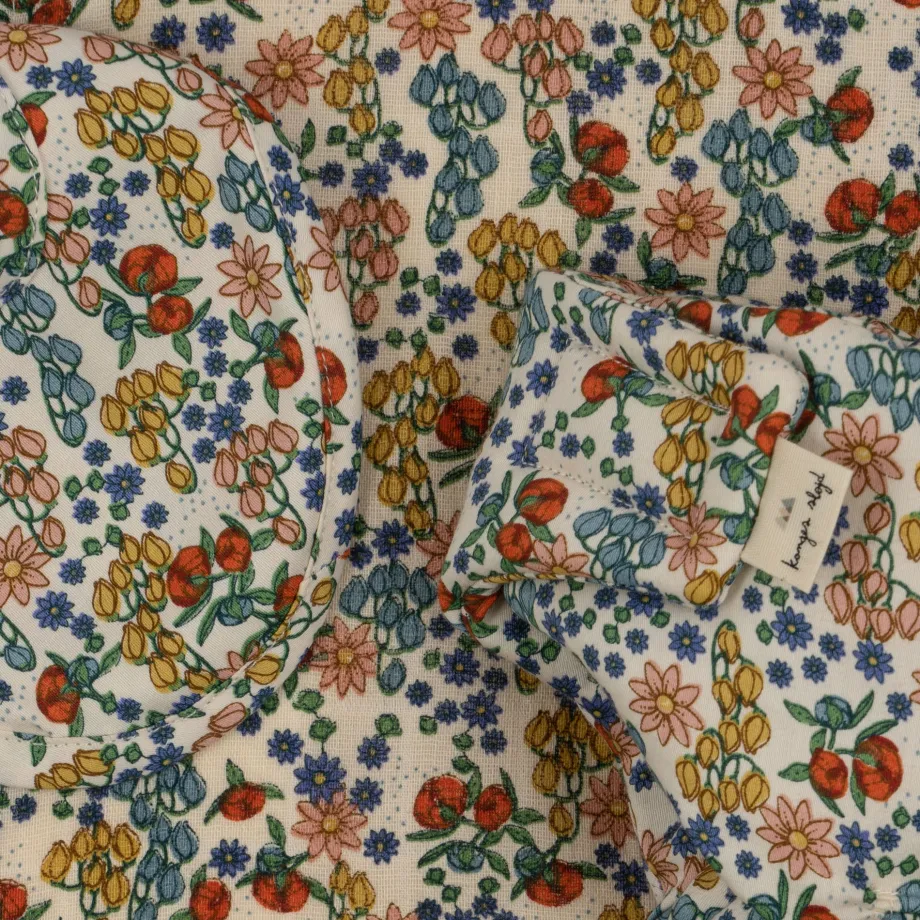 Komplet puslesæt til små dukkemødre og -fædre. Indeholder ble med velcrolukning. hagesmæk og taske i 100 % økologisk bomuld. Hagesmæk: H: 8.5 cm x B: 17 cm Pose: H: 28 cm x B: 19