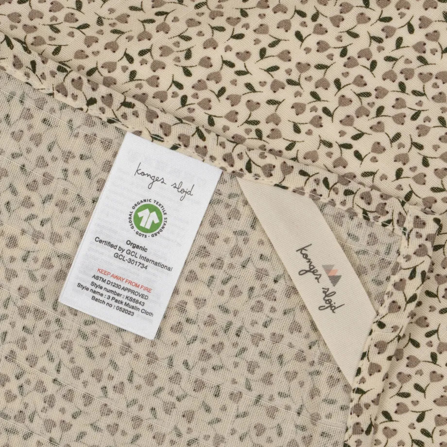 3-pak muslin stofbleer Fremstillet i 100% økologisk bomuld GOTS. Organic. certificeret af CU1094701 65 cm x 65 cm Vaskeanvisning: Kan vaskes ved 40 grader.