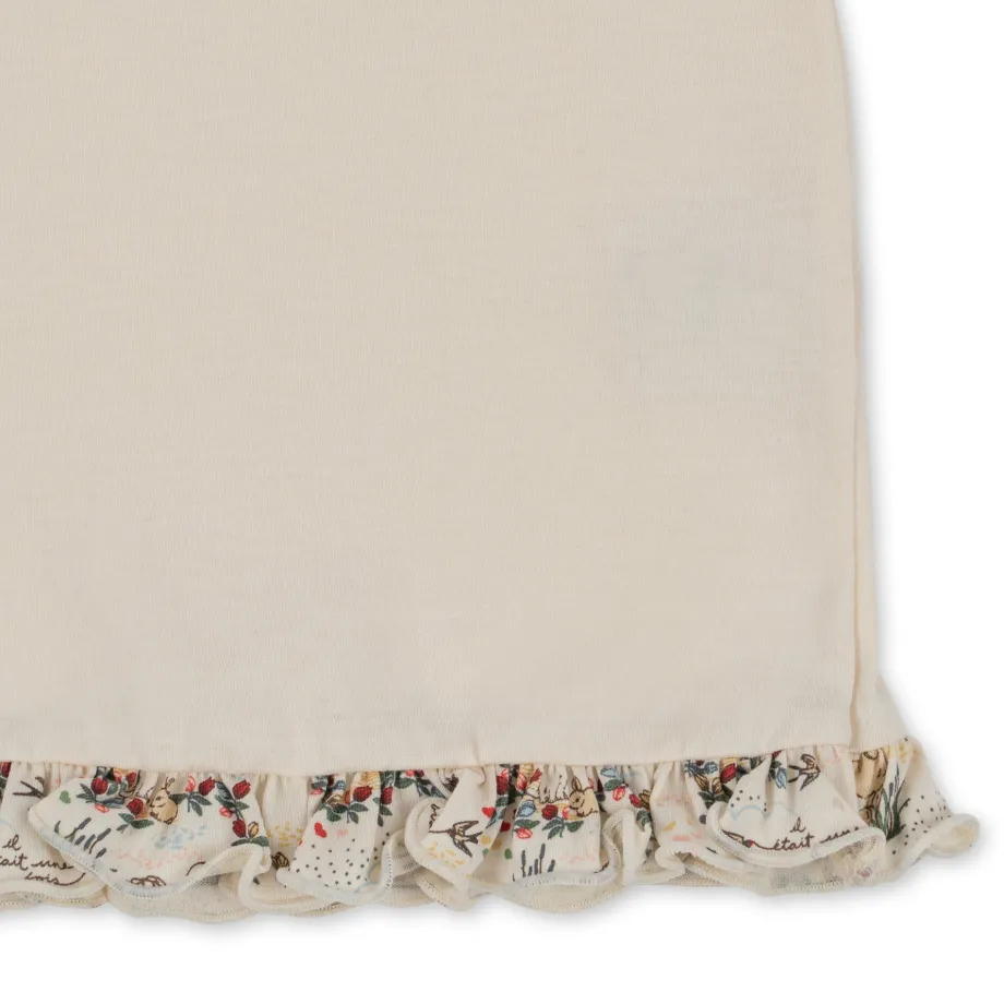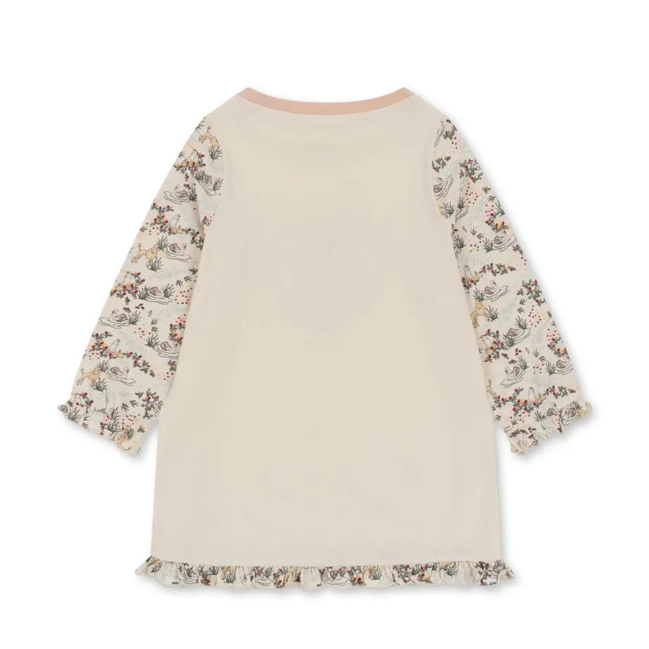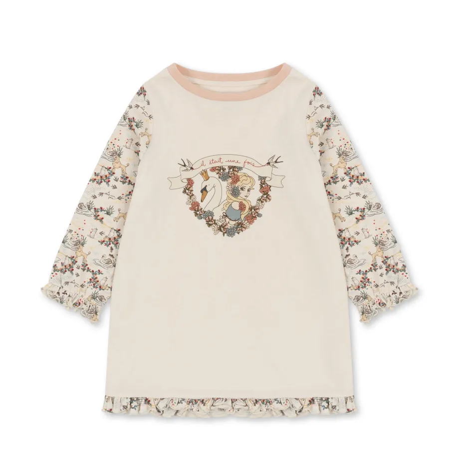 Kjole i 100 % økologisk bomuld. Bemærk: I de mindre størrelser fra 9 til 18 måneder er der trykknapper på venstre skulder. så den er nem at få på. Størrelserne fra 2 år har en alm