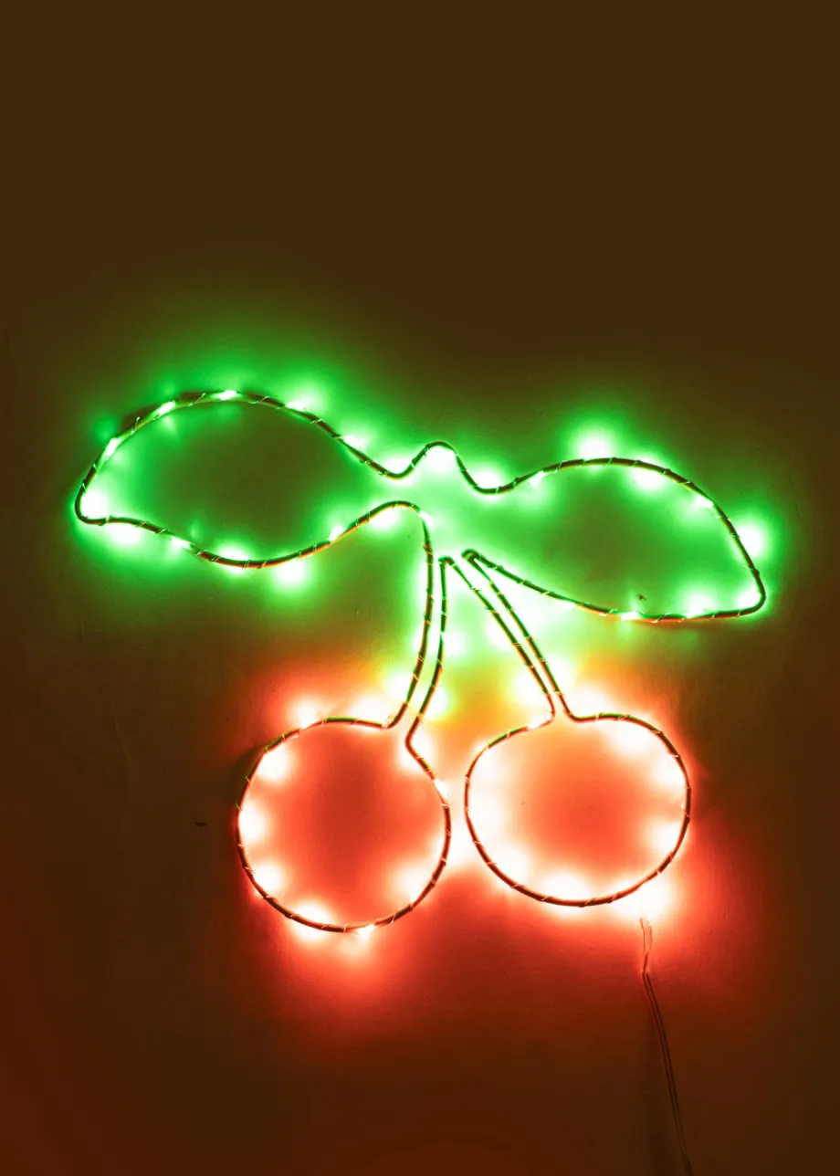 Not allowed for sale in the US. Trådlampe med kirsebærmotiv. Lavet af en metalramme med kobbertråd. CE-certificeret.