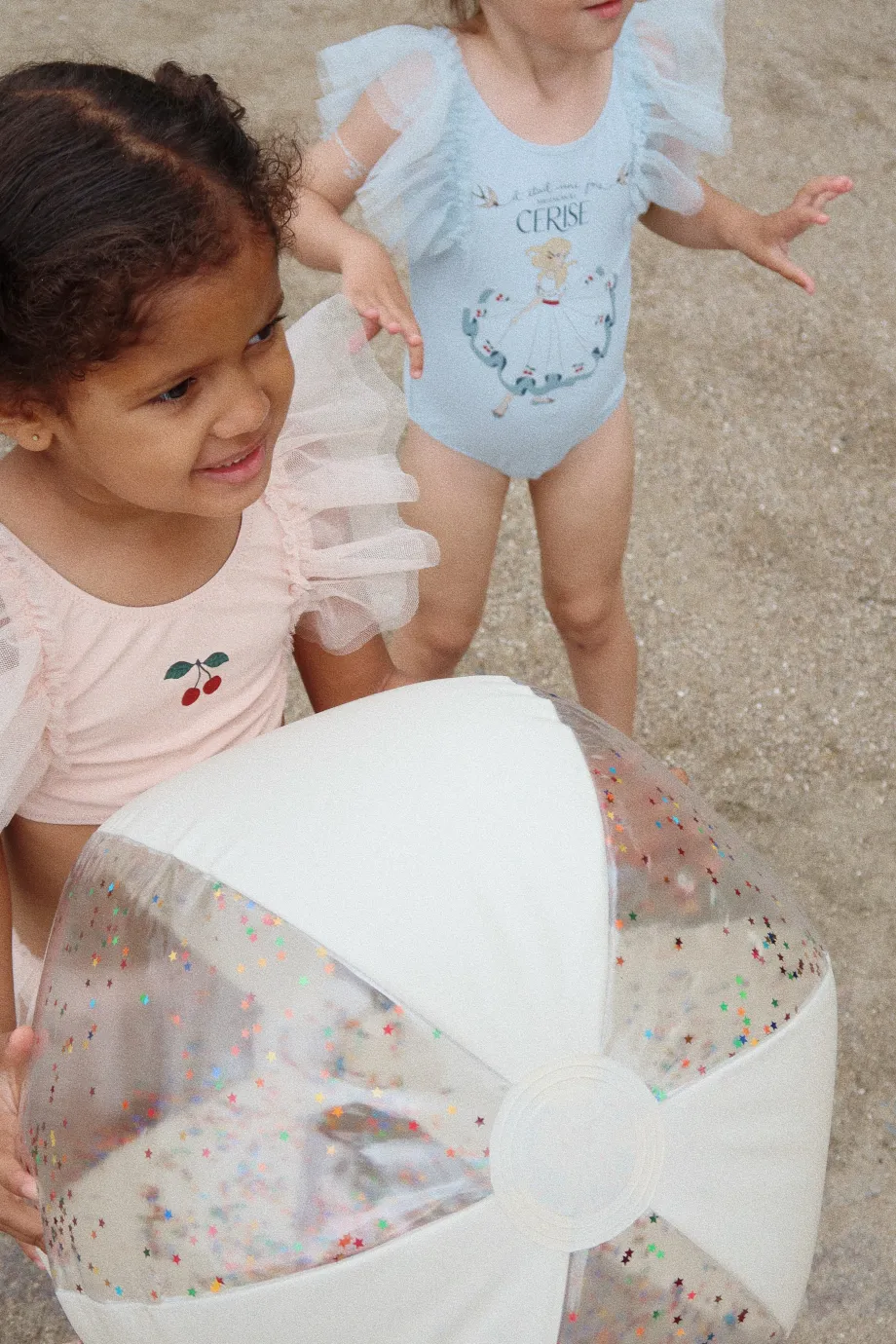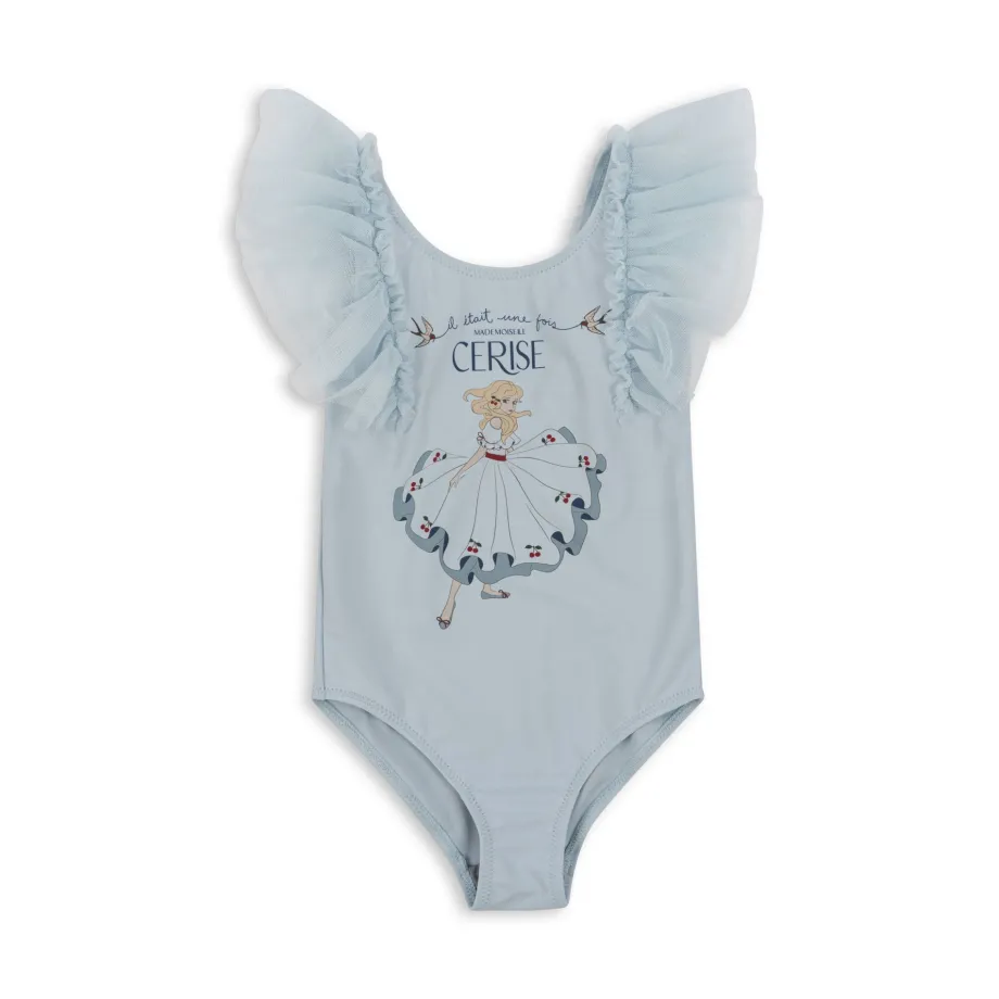 Badedragt med detaljer i lagdelt tyl. Designet med praktiske trykknapper ved benåbningerne fra størrelse 6M-18M. Fremstillet af 80% genanvendt polyester og 20% elastan Dette pr