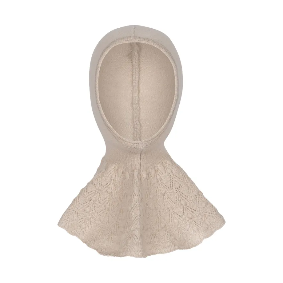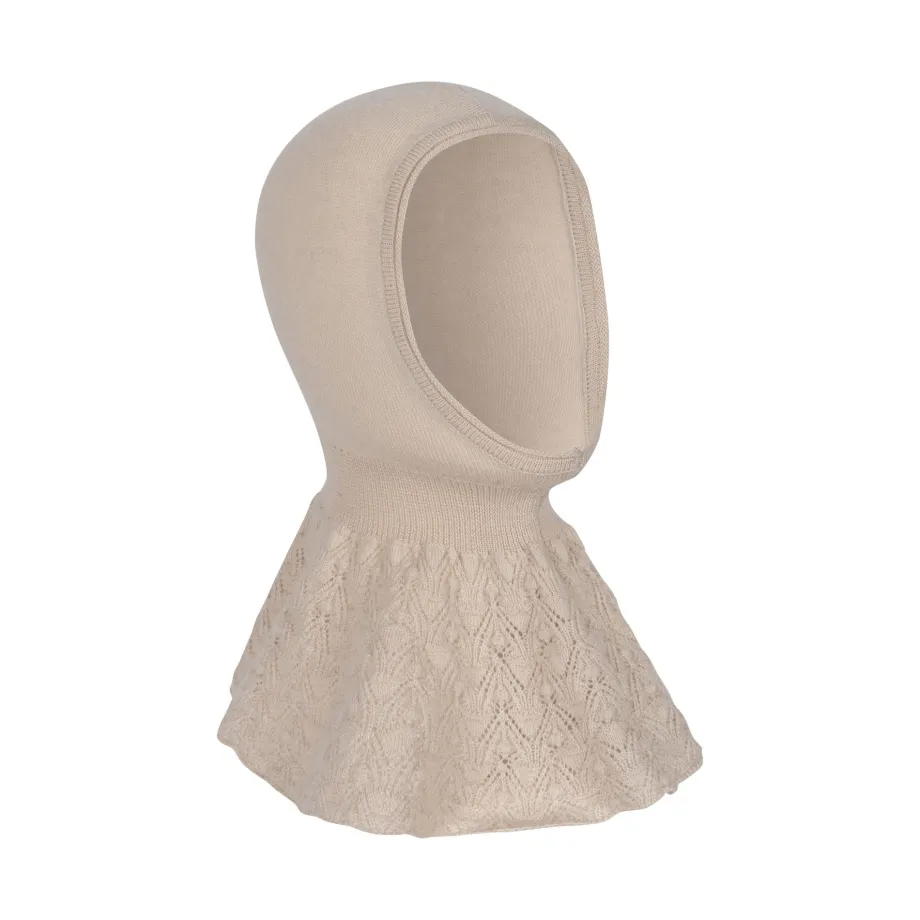 Blød og varm elefanthue i uld med dekorativt hulmønster. Lavet af 100 % mulesing-fri merinould.