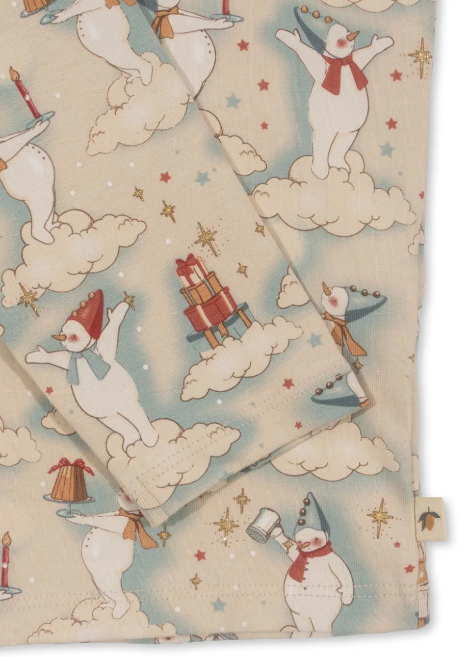 Blødt sæt i bomuldsjersey med matchende top og underdel. Lavet af 95 % økologisk bomuld og 5 % elastan Med trykknapper på venstre skulder i størrelserne 9-18 måneder. GOTS. øk