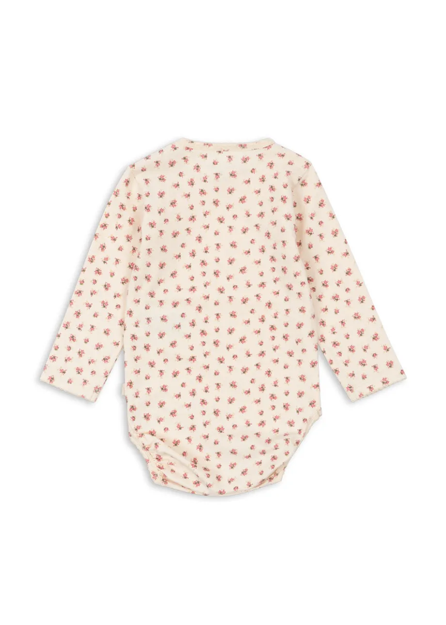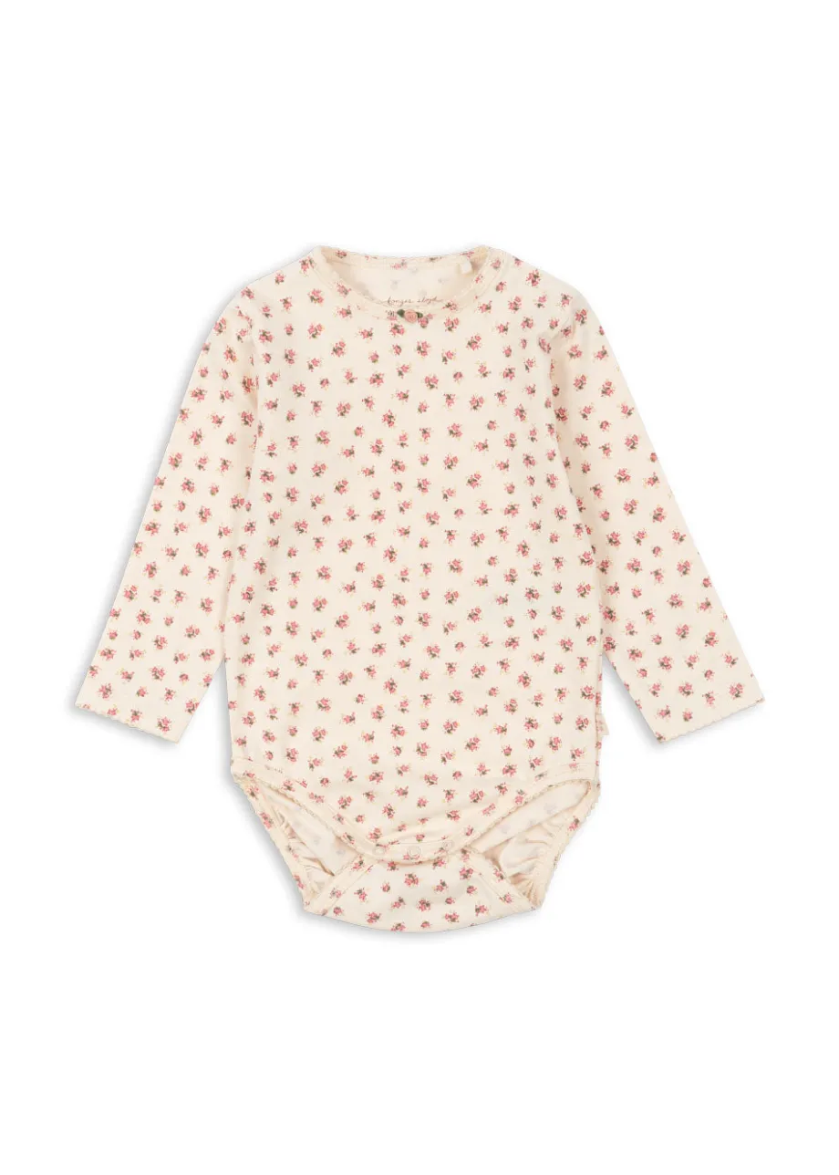 Blød langærmet bodystocking i en bomuldsblanding med en smule stræk. Lavet af 95 % økologisk bomuld og 5 % elastan. Med praktiske trykknapper i skridtet og på skulderen. GOTS. økol