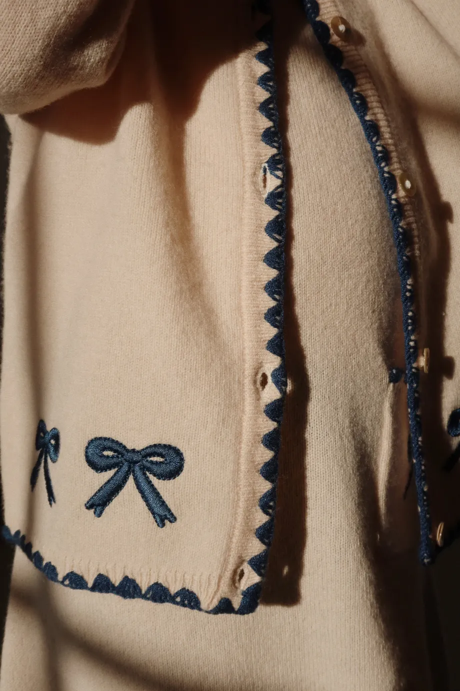 Blød og varm uldkjole med kontrastsyninger langs kanterne og broderede sløjfer. Brug den alene eller med en bluse under. Lavet af 100 % uld