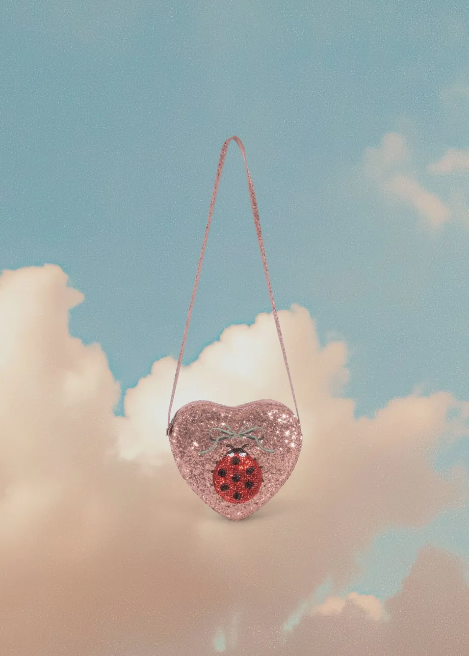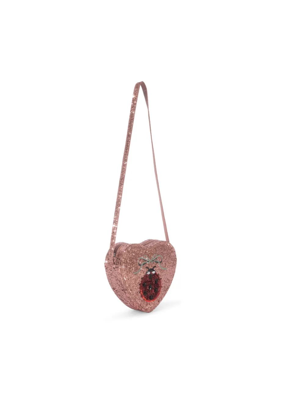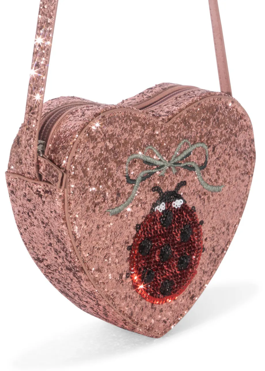 Skuldertaske med glimmer og smal skulderrem. Materialer: Hovedmateriale: 75 % polyester og 25 % polyethylenterephthalat For: 100 % polyester Velegnet til børn over 3 år