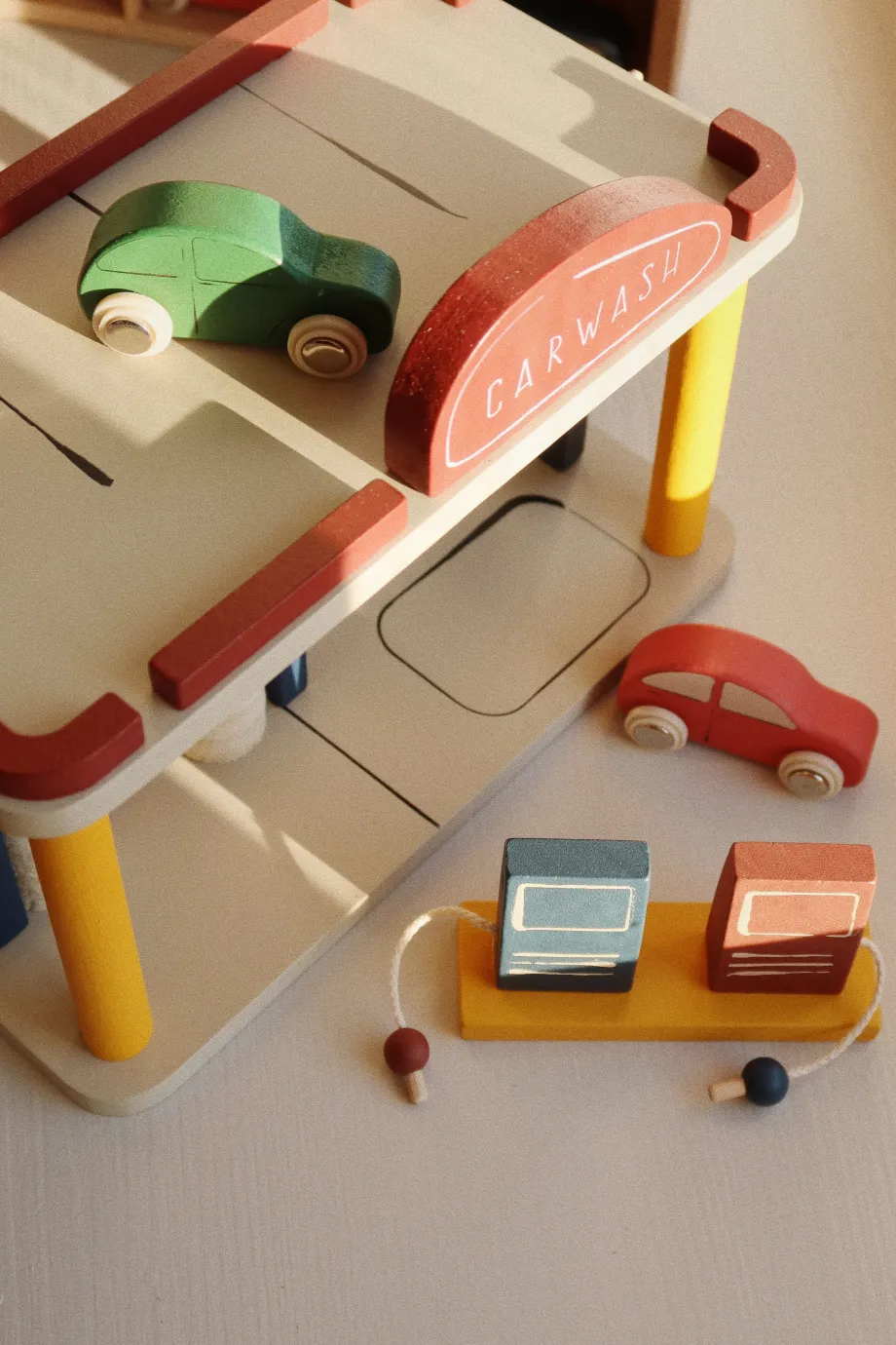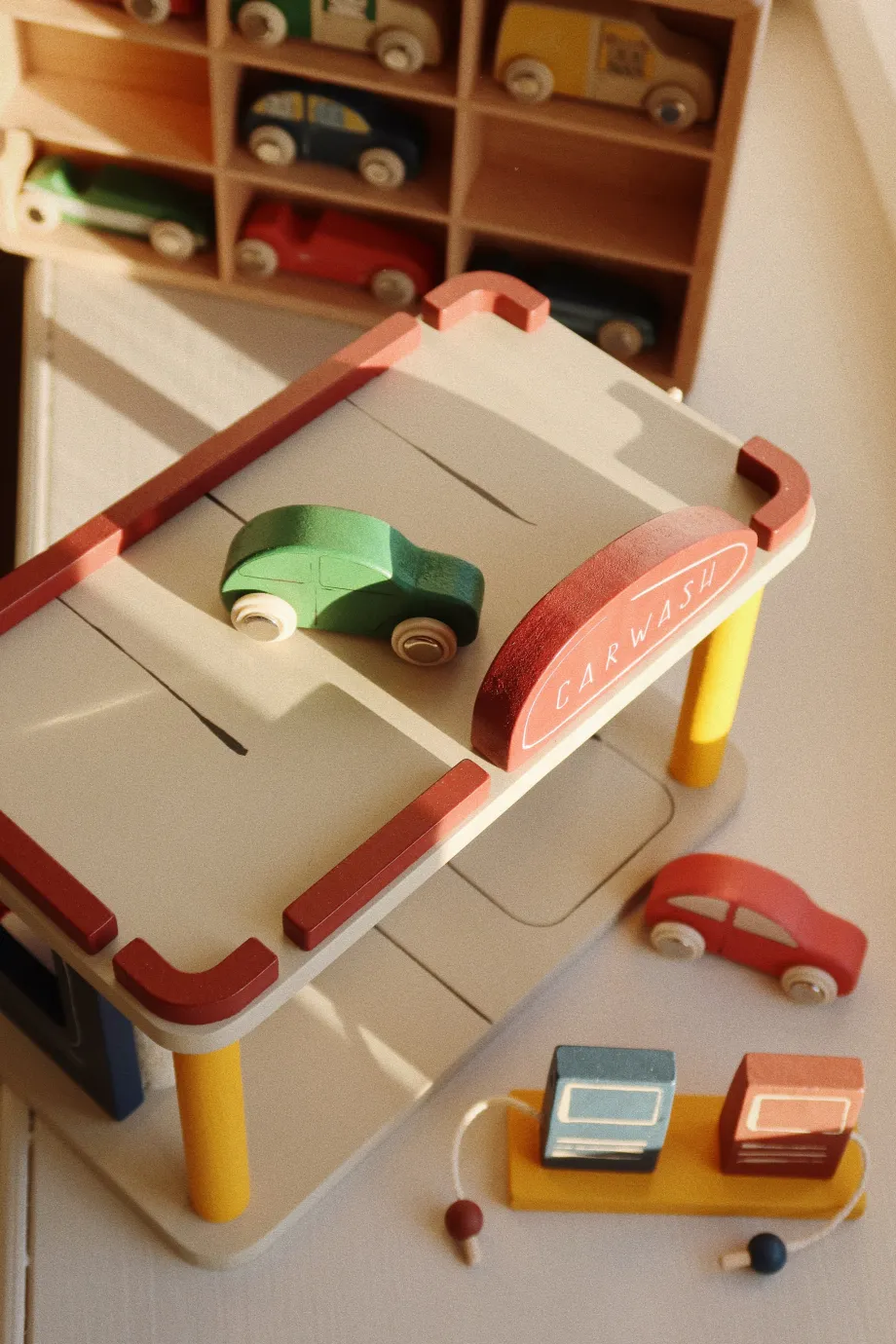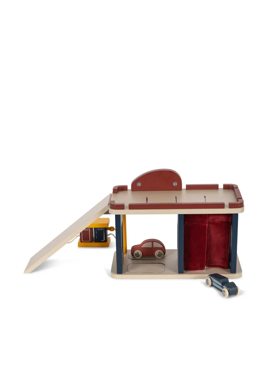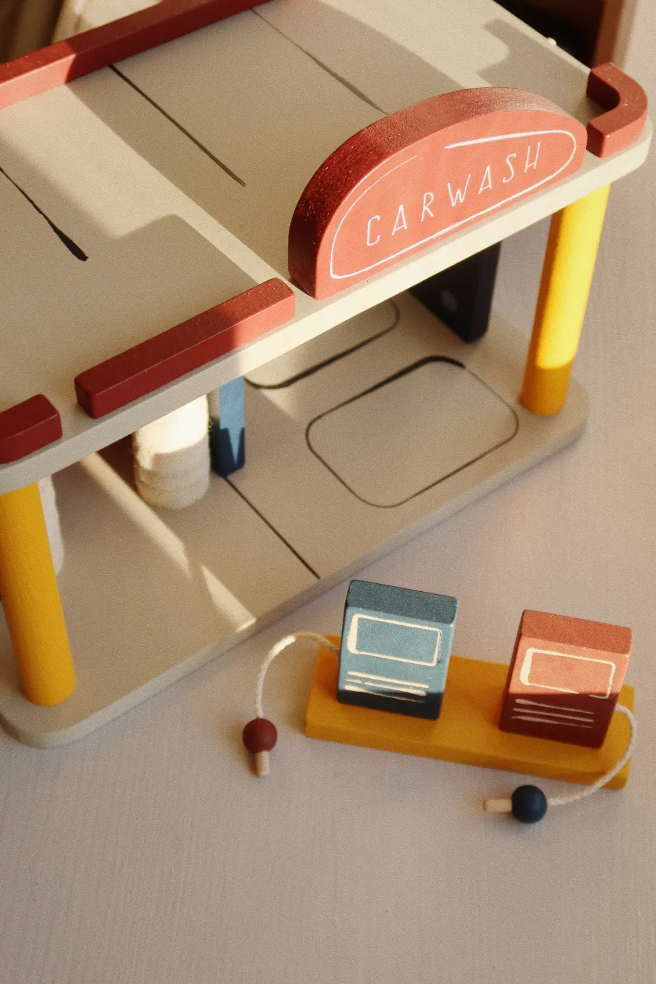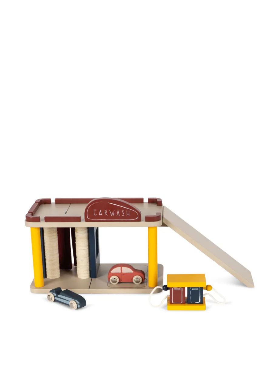 Bilvask i træ. Der medfølger rampe og to minibiler. Produktet er fremstillet af FSC™-certificeret bøgetræ. krydsfiner og MDF. Licensnummer: FSC C177572. Fra 3 år. ADVARSEL!. KVÆLNI