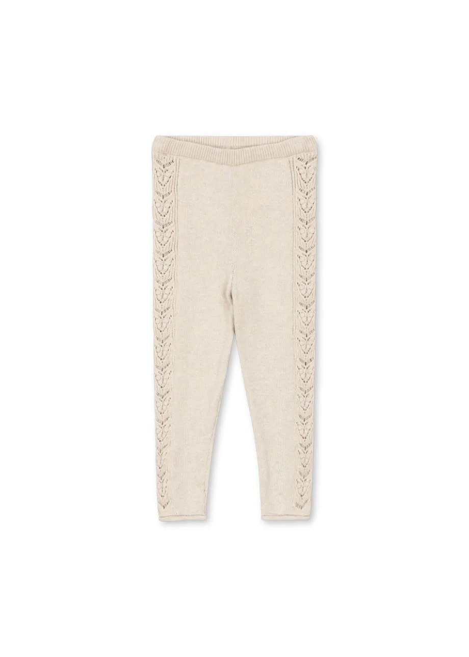 Bløde strikkede bukser i 100 % økologisk bomuld. Med elastik i taljen og et dekorativt strikmønster. Off-white melange: lavet af 100 % økologisk bomuld. Powder pink: lavet af 88 %