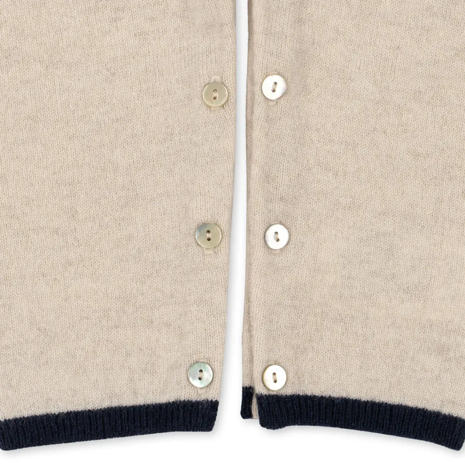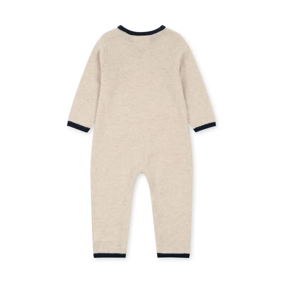Blød heldragt med perlemorsknapper langs benene. Fremstillet i 100% cashmere.