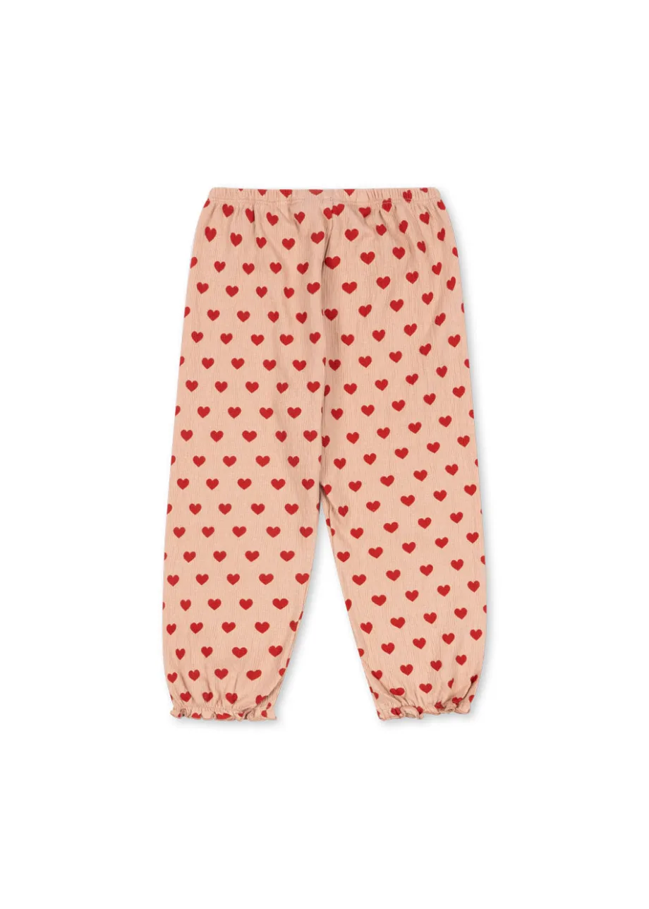 Bløde bukser med vidde og elastik i taljen. Lavet af 94 % økologisk bomuld. 5 % polyester og 1 % elastan. Dette produkt indeholder mindst 50 % OCS-certificeret bomuld. certificeret