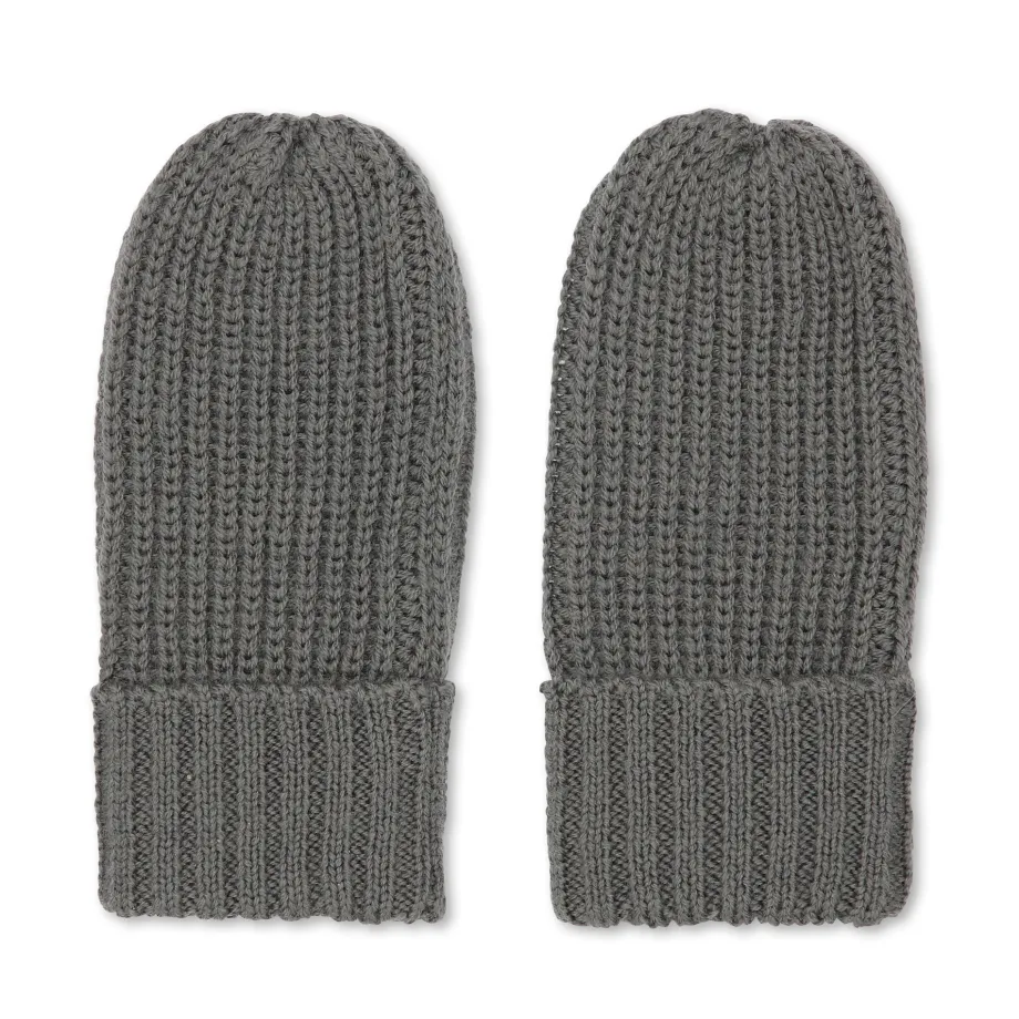Varme og bløde vanter i 100 procent ribstrikket merinould. Designet med ribstrikkede. foldede kanter og et praktisk tommelstykke.