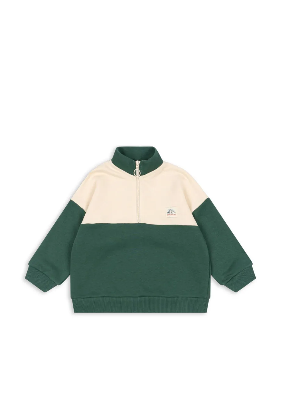 Blød sweatshirt med den klassiske halve lynlåslukning og høj krave. Lavet af 90 % økologisk bomuld og 10 % polyester. Dette produkt indeholder 90 % OCS-certificeret bomuld. certifi
