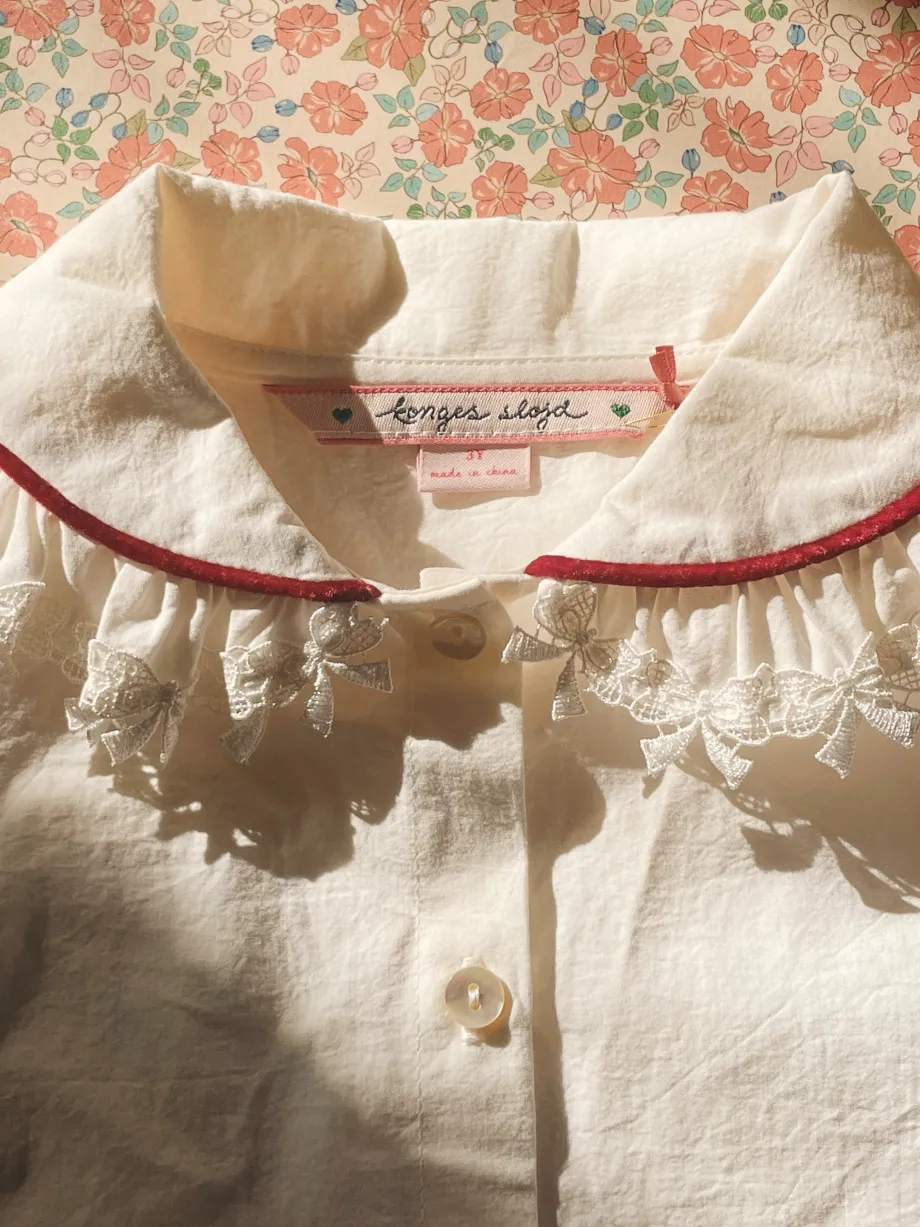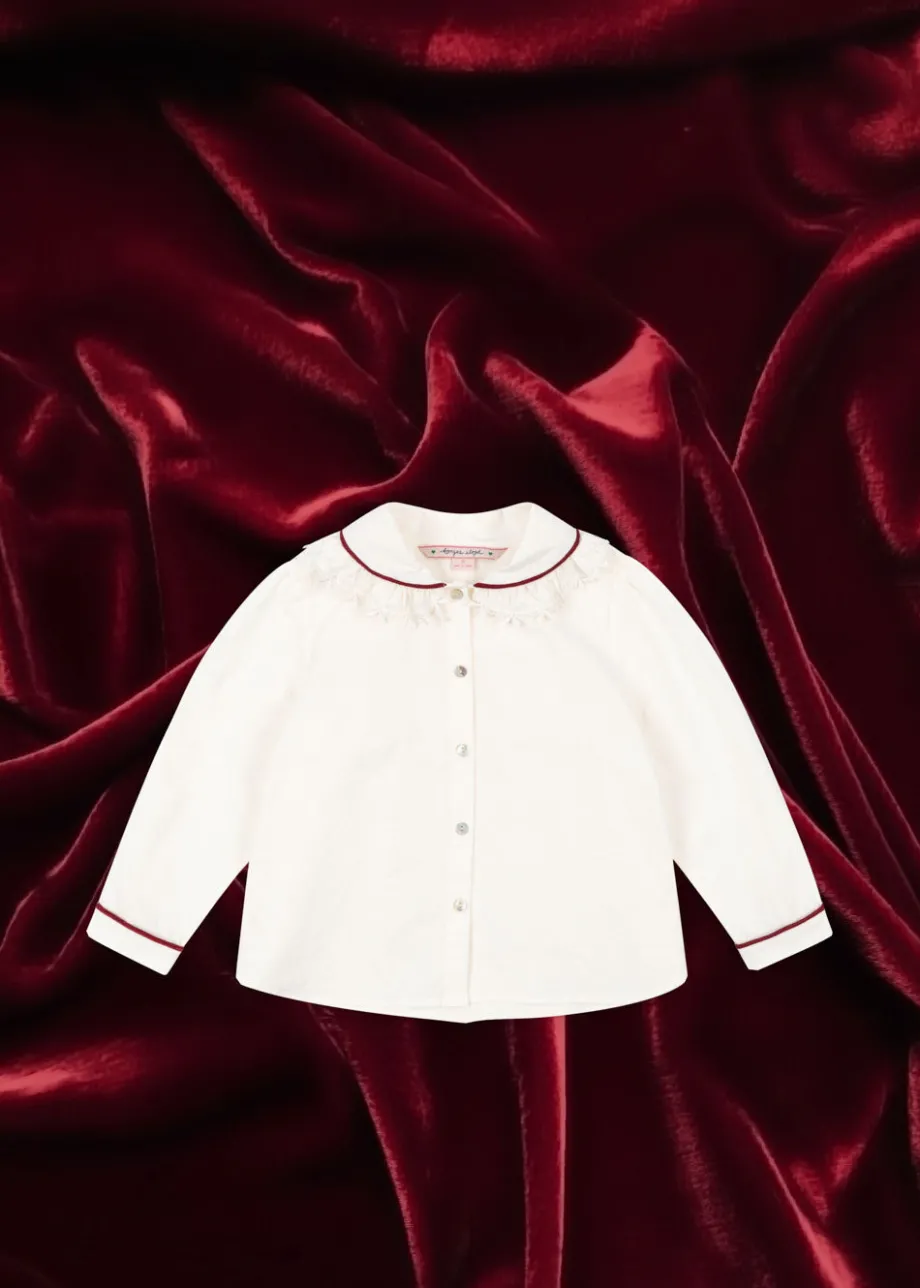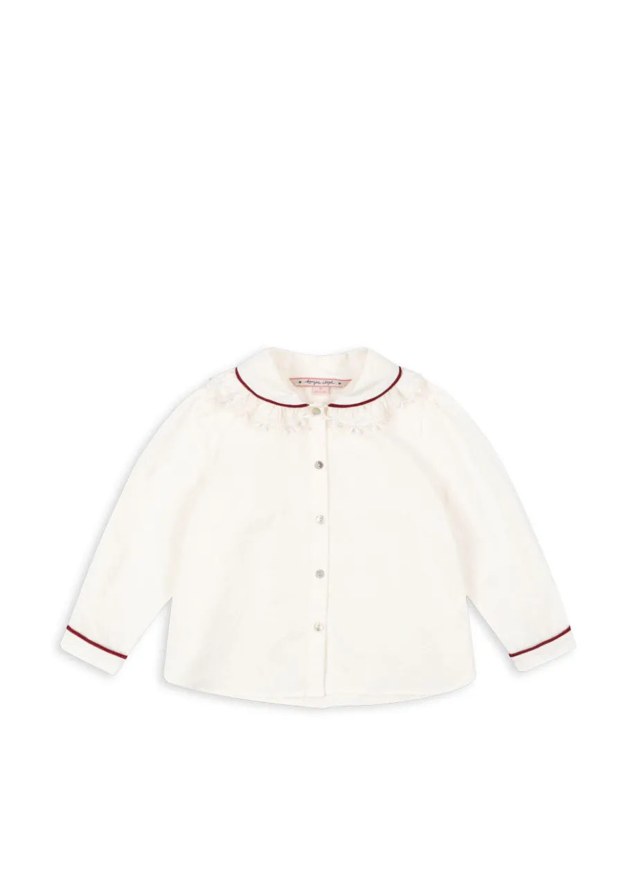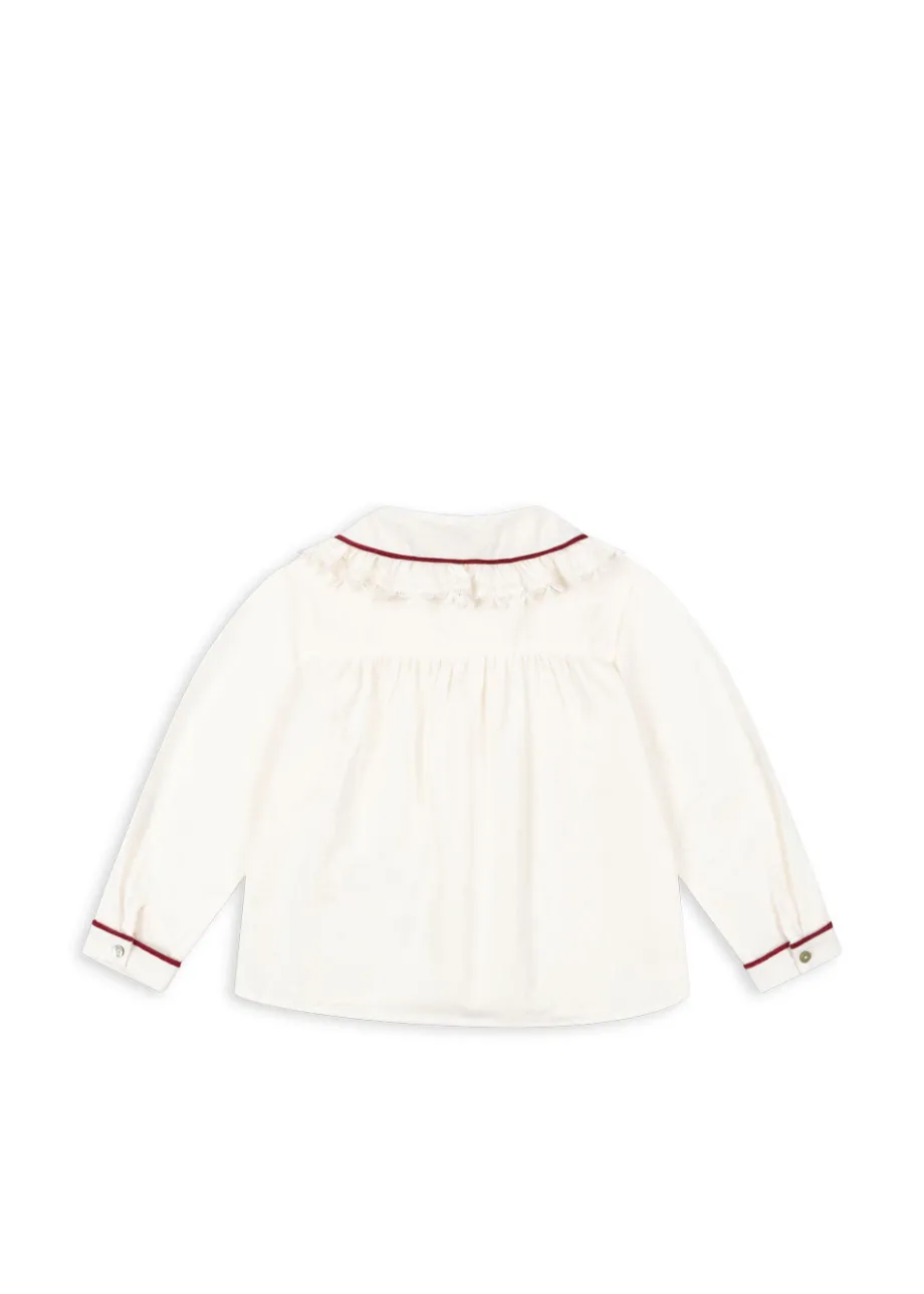 Blød bomuldsskjorte med flæsekrave. Lavet af 100 % økologisk bomuld GOTS. økologisk. certificeret af CU1094701