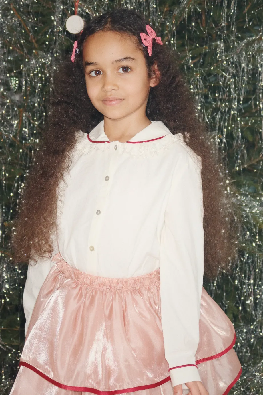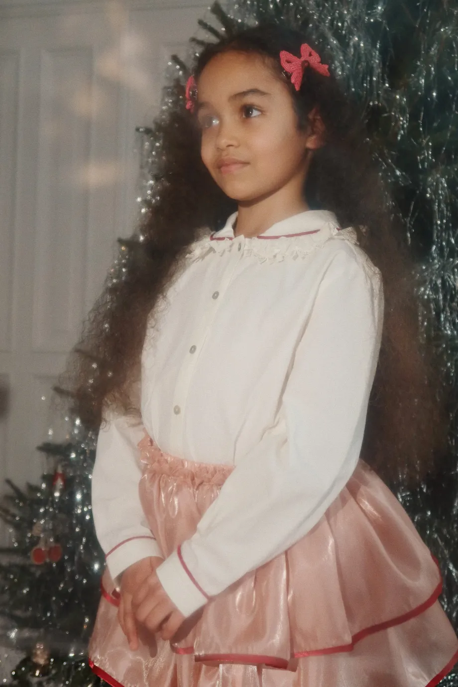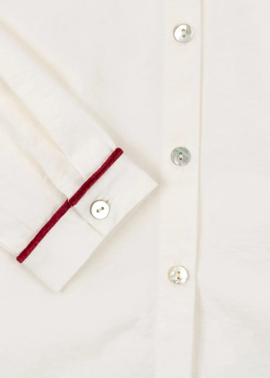Blød bomuldsskjorte med flæsekrave. Lavet af 100 % økologisk bomuld GOTS. økologisk. certificeret af CU1094701