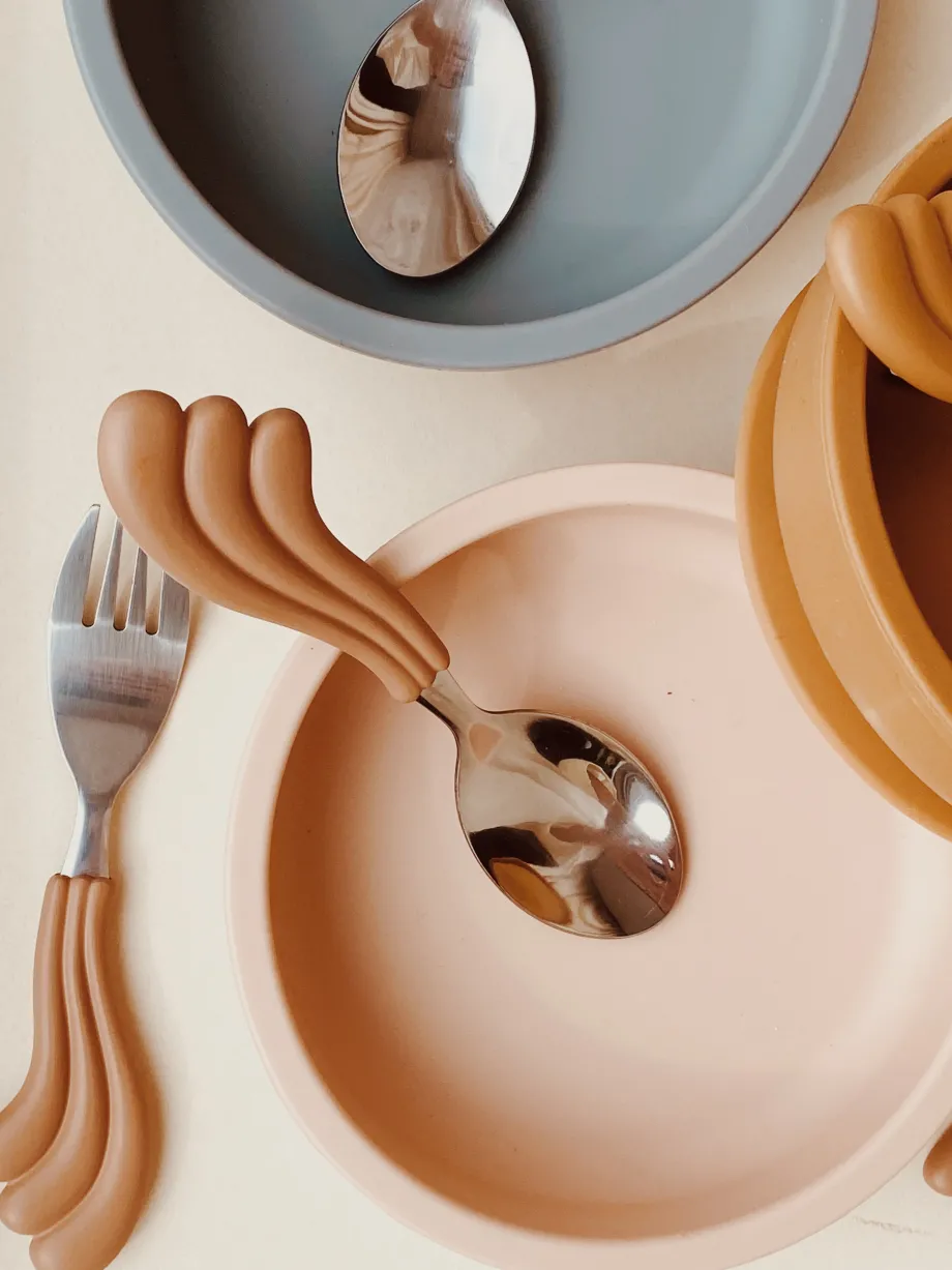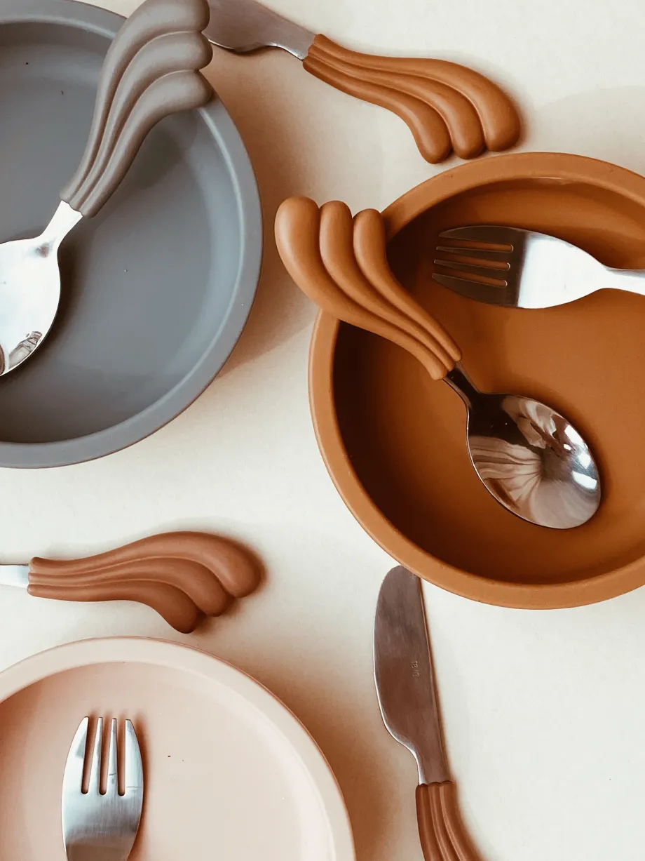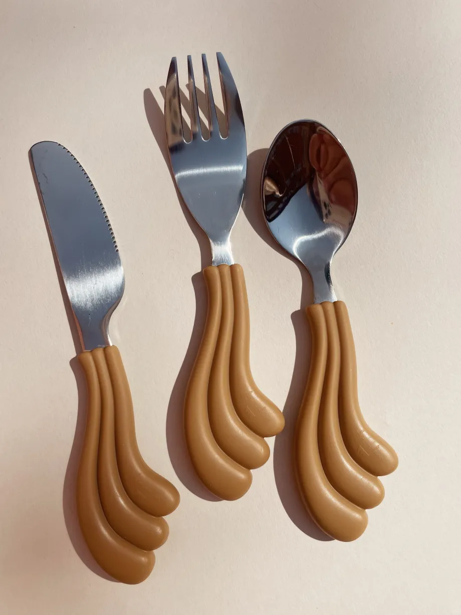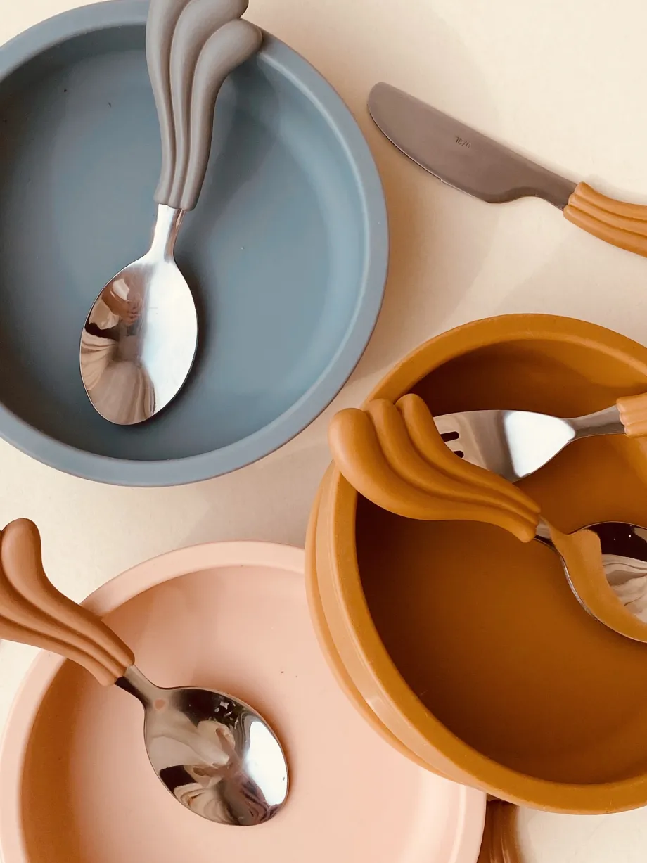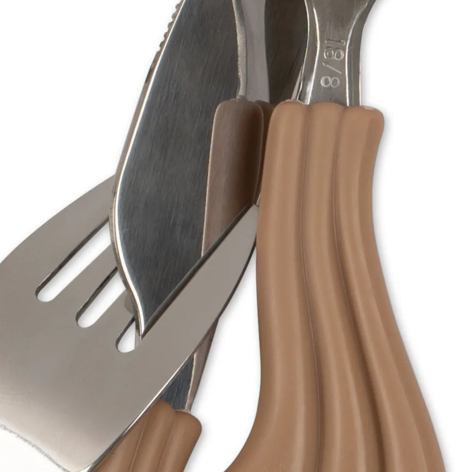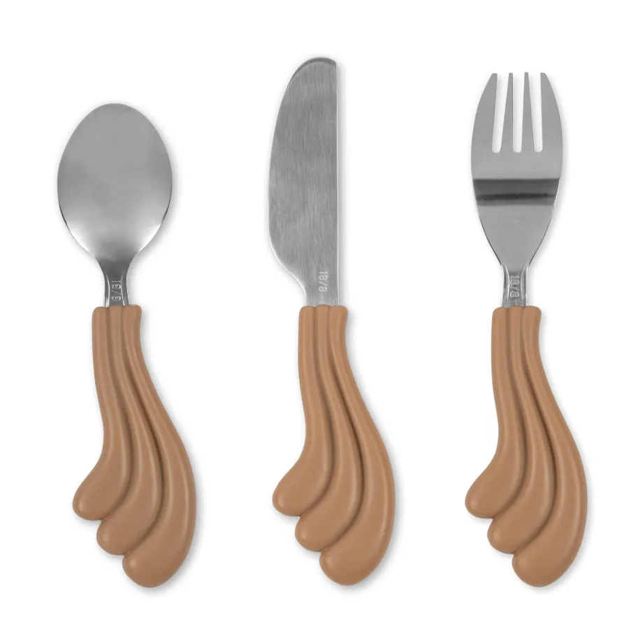 3-pak børnebestik med kniv. gaffel og ske. Fremstillet i rustfrit stål og PP. Anbefales til børn fra 3 år og op. Kniv: 14.8 cm Gaffel: 14.3 cm Ske: 13.5 cm Testet og i overens