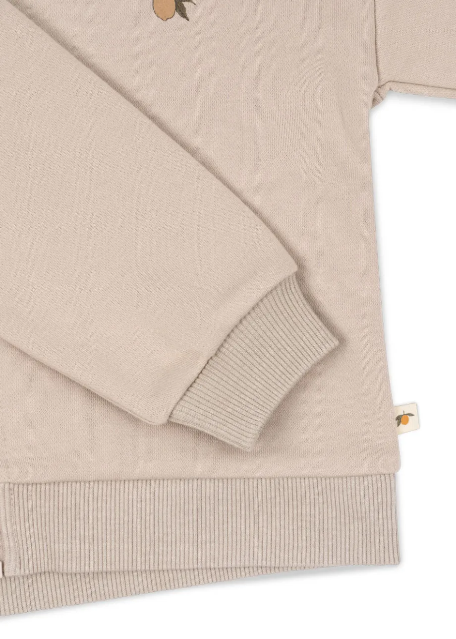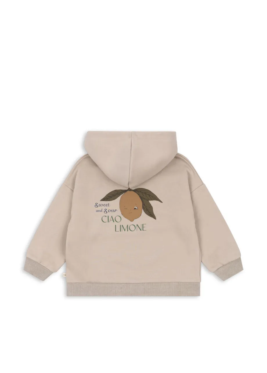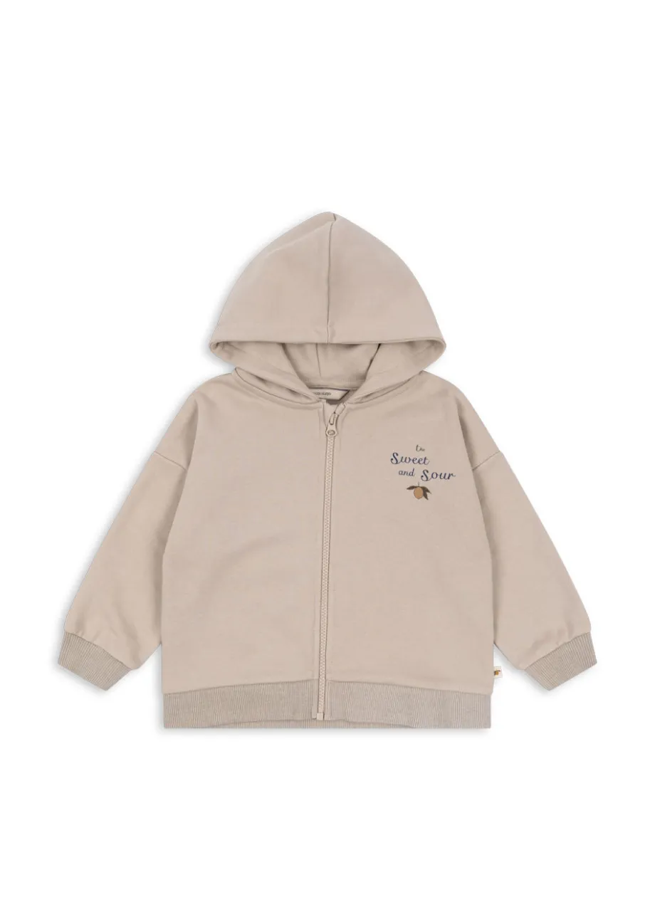Blød hættetrøje i økologisk bomuld med en smule stræk. Med fuld lynlåslukning foran og en blød hætte. Lavet af 90 % økologisk bomuld og 10 % polyester. Dette produkt indeholder 90