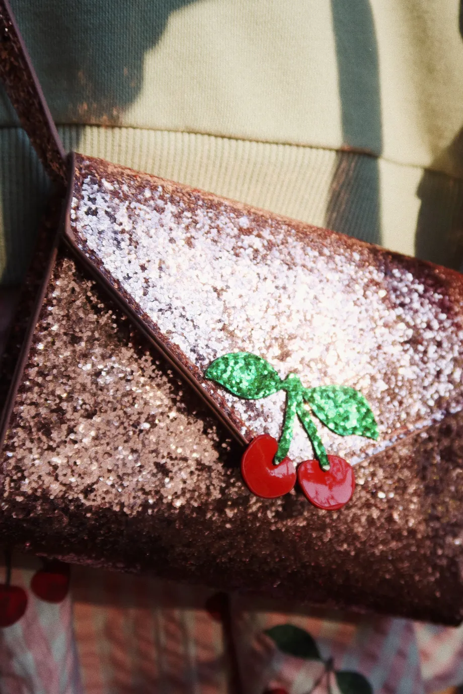 Glimmertaske med trykknaplukning foran og en tynd skulderrem. Lavet af 90 % PET og 10 % polyuretan. Fra 3 år.