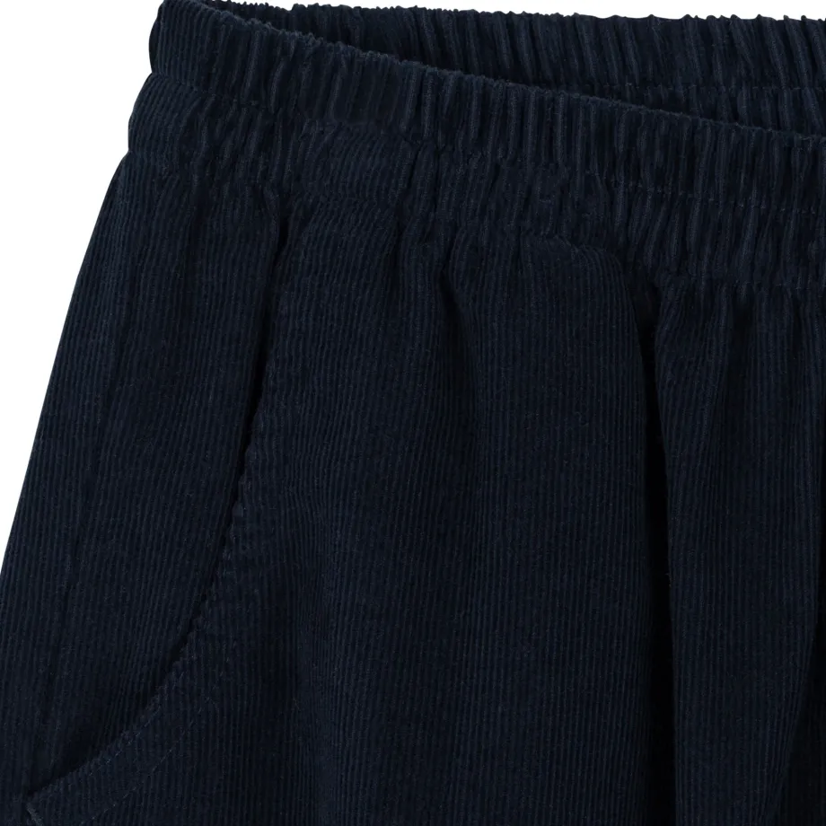 Bløde fløjlsbukser i en varm og kraftig kvalitet. Med elastik i taljen og lommer foran. Lavet af 100 % økologisk bomuld