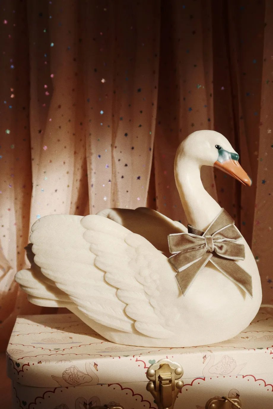 Svaneformet lampe med justerbart lys. Effekt: 3 W Indgangsspænding: 5 V 110-240 V Kabel: 2 m Yderlag: PVC Fod: ABS Lampe: LED L: 24 cm x B: 15.8 cm x H: 18 cm