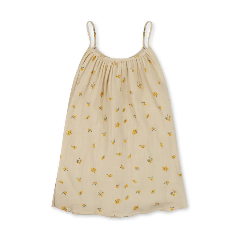 Blød kjole med stropper i en let og åndbar musselinkvalitet. Fremstillet af 100 % økologisk bomuld