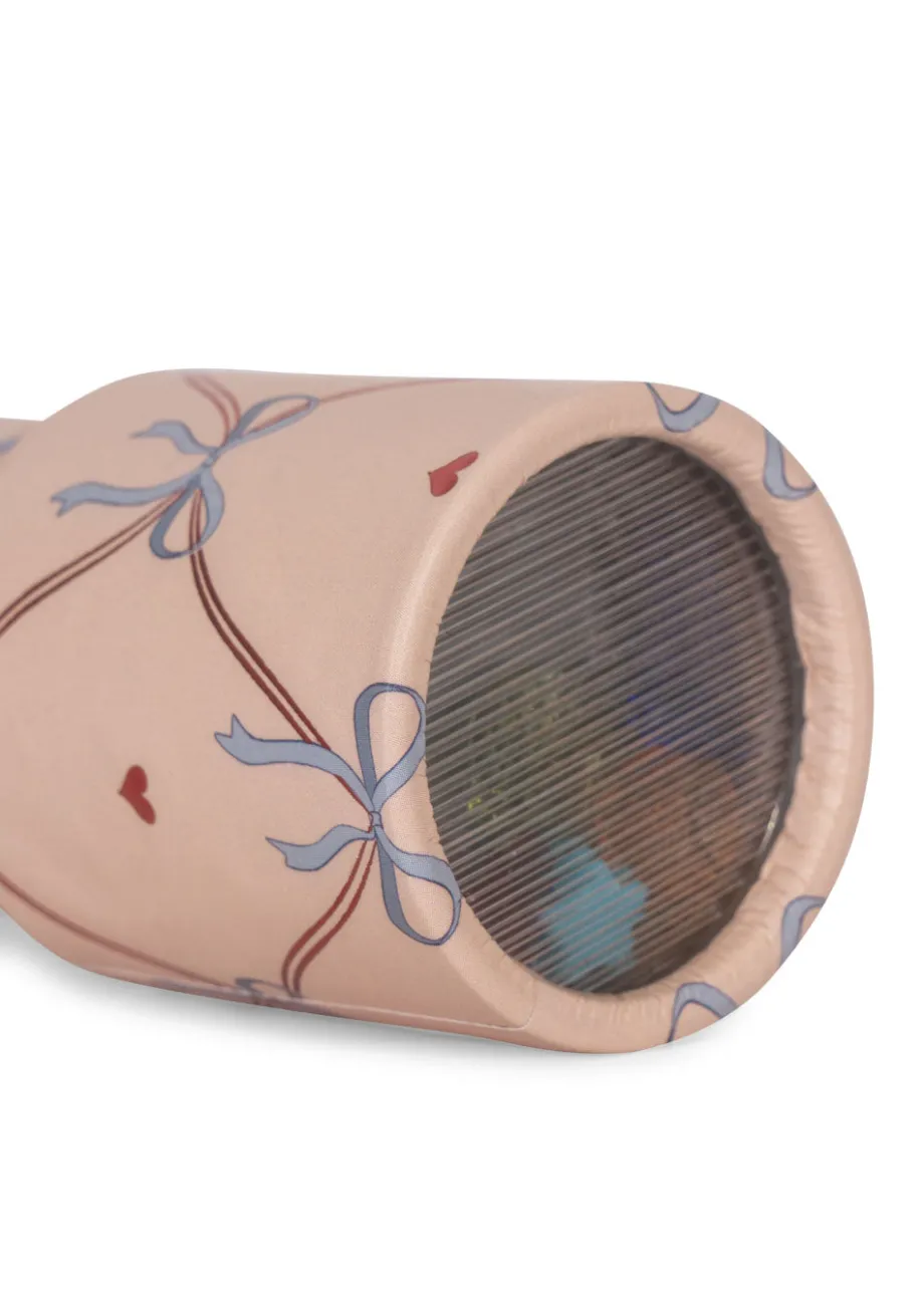 Magisk kalejdoskop med perler indeni. Kig i den. og se de mønstre og farver. som reflektionerne fra spejlene og de farvede sten laver. L: 19 cm x D: 4.5 cm Fra 3 år Dette produk