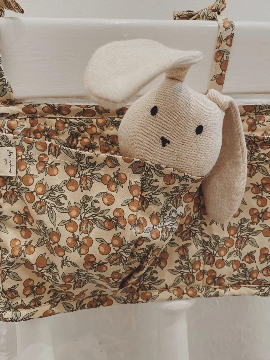 Vores søde og praktiske sengelommer er perfekte til opbevaring af din babys sut. nusseklud og andre fornødenheder ved sengetid. Lavet i vores bedste 100 % økologisk bomuld / satin