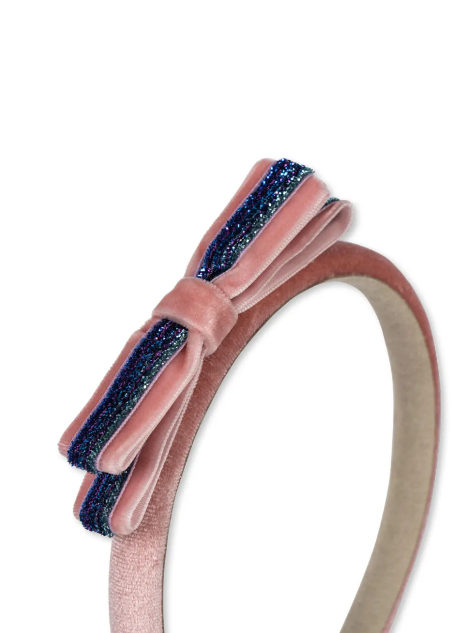 Dekorativ hårbøjle med veloursløjfe. Lavet af 85 % polyester og 15 % akryl. Fra 3 år.