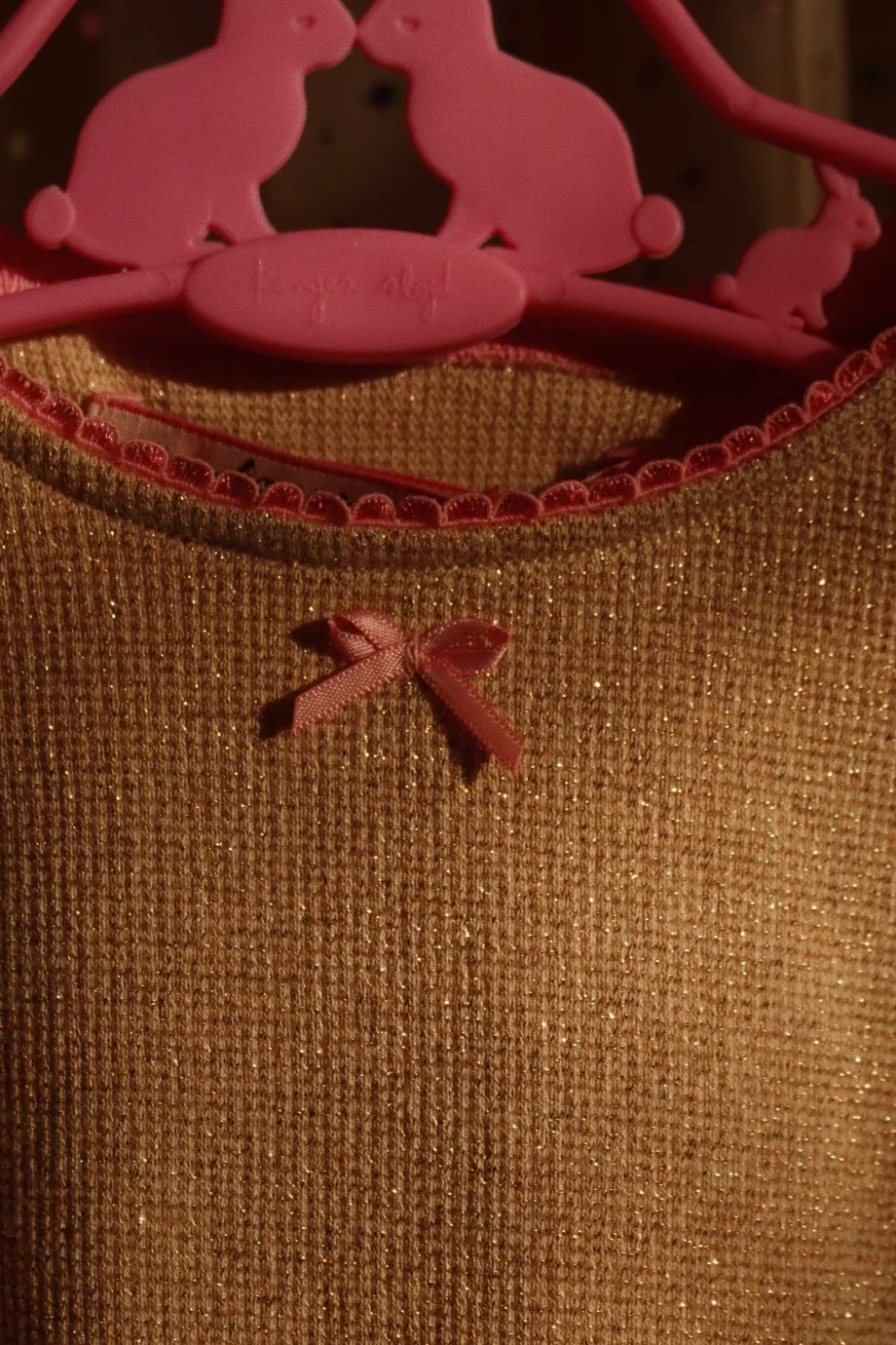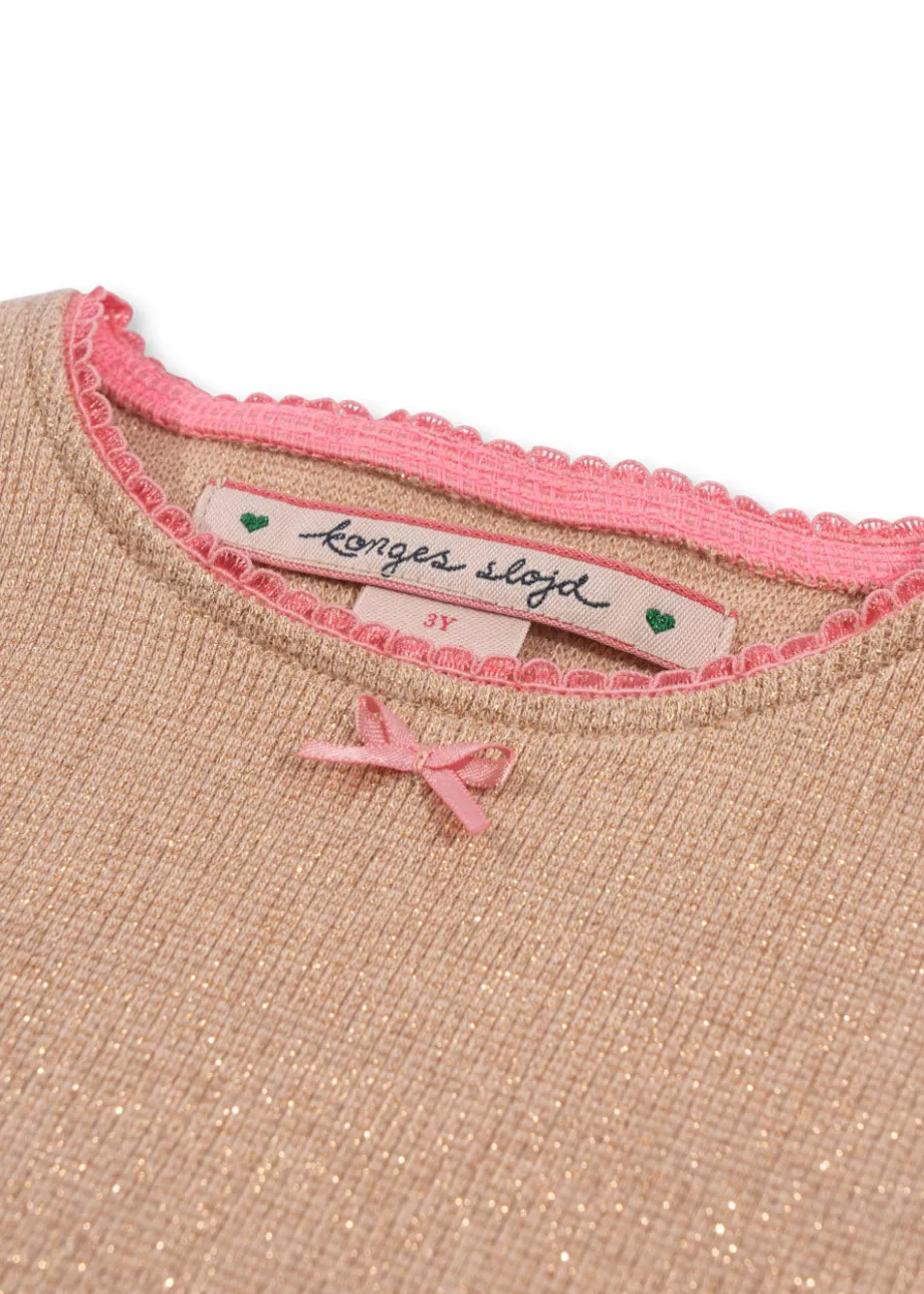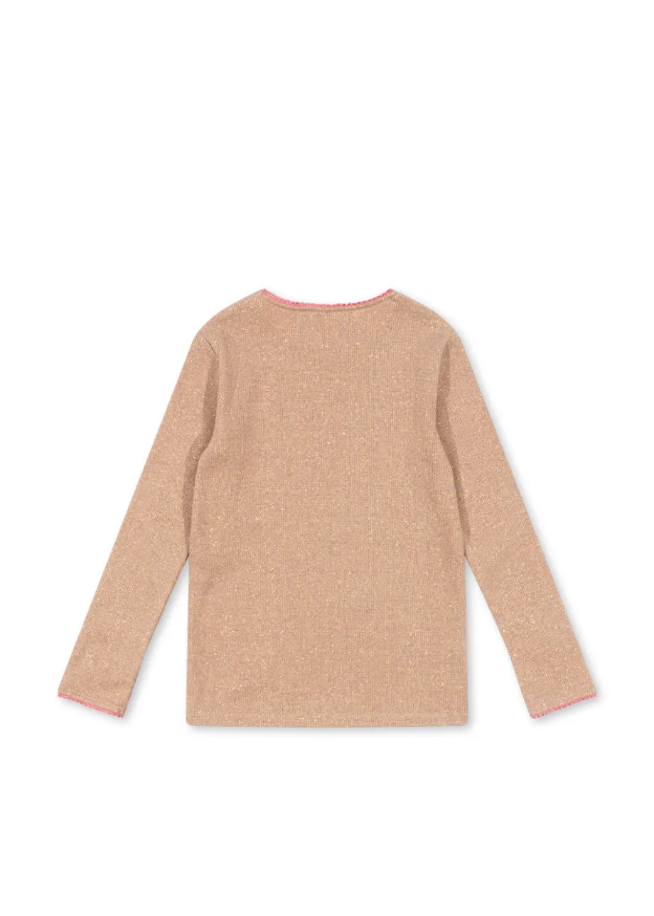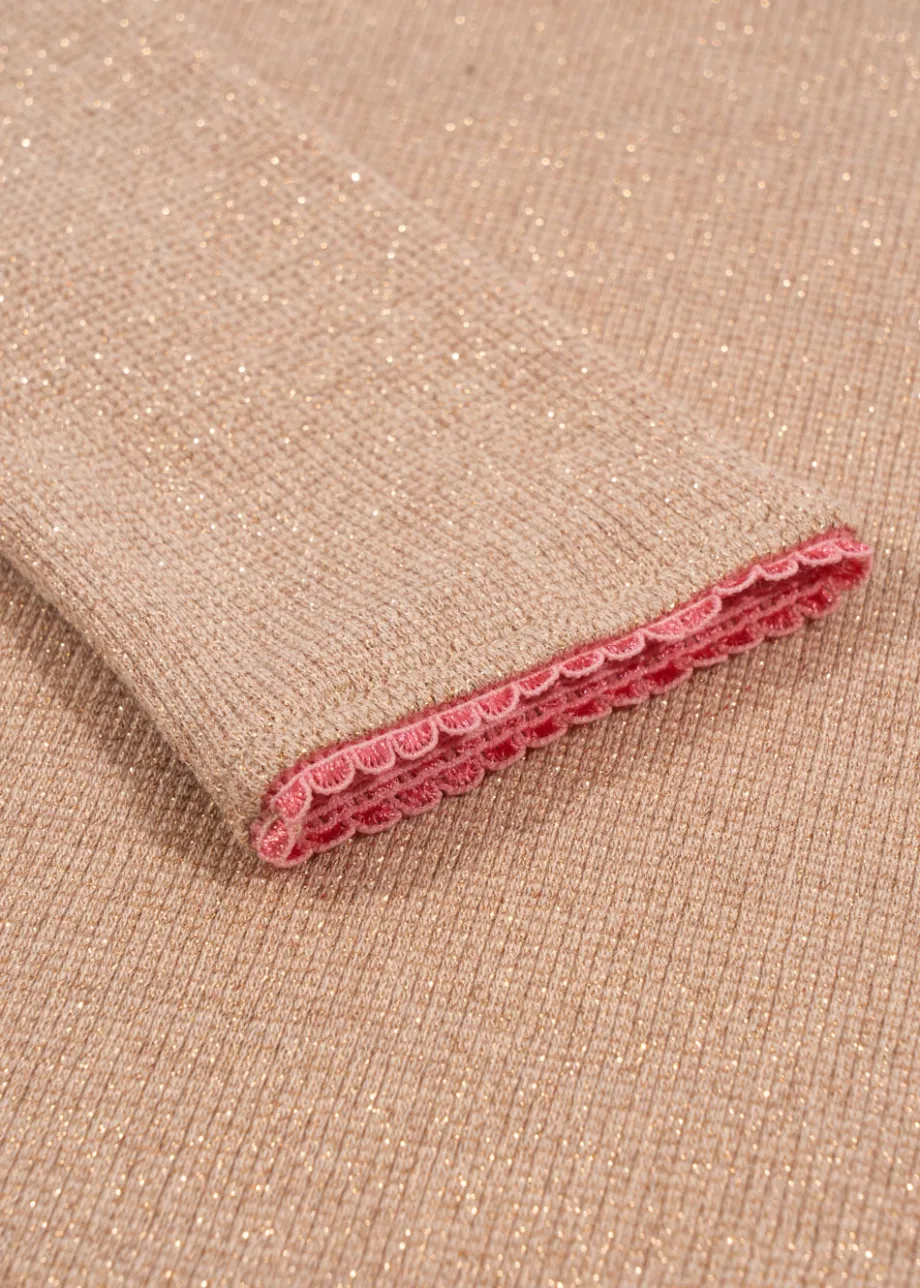 Blød ribstrikket bluse med stræk. En perfekt hverdagsbluse med lidt glamour. Lavet af 60 % bomuld med 38 % lurex og 2 % elastan