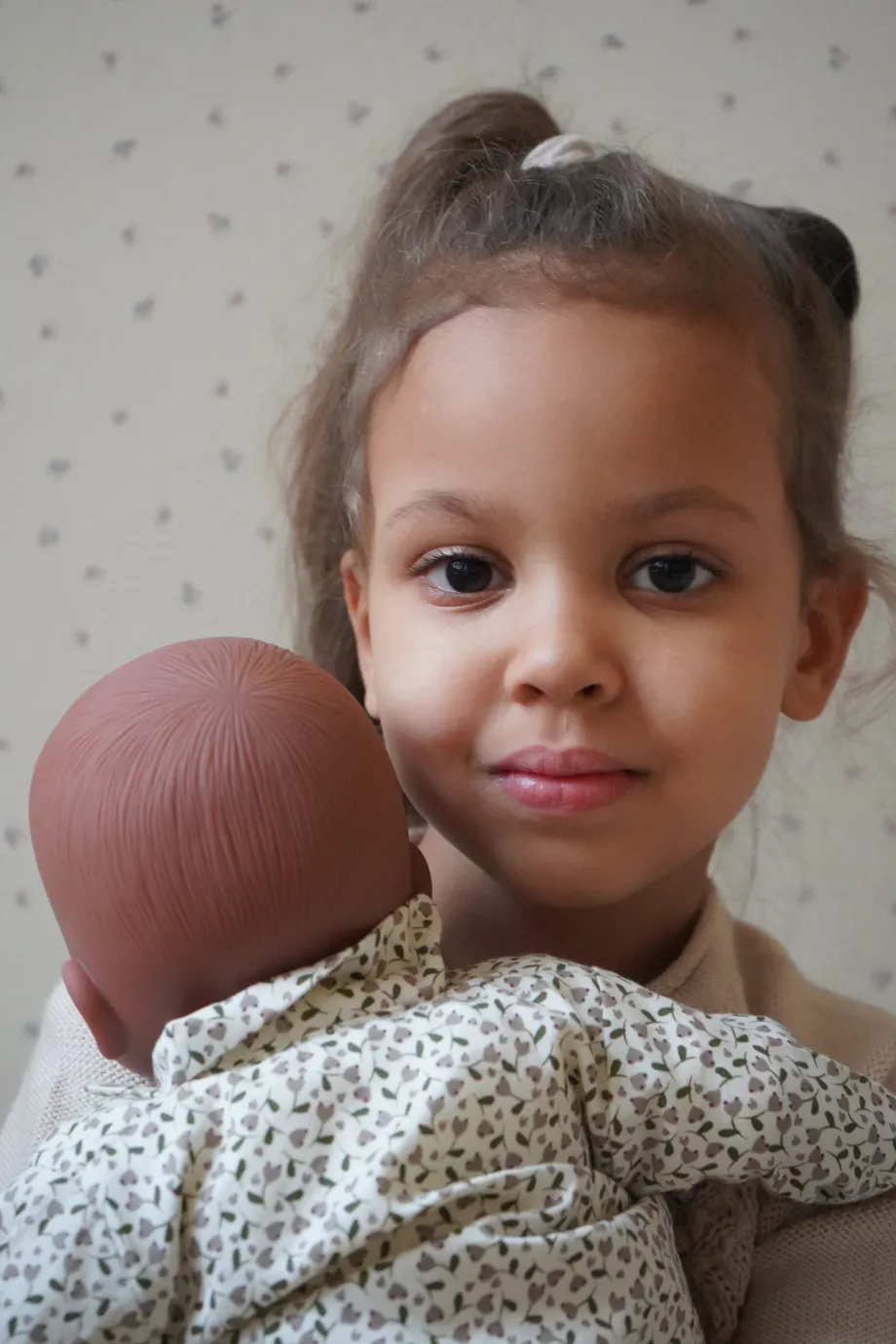 Dukken Harriet. fremstillet i vinyl og økologisk bomuld. Harriet kan drikke af flaske og tisser efterfølgende. Sut og flaske følger med. H: 42 cm x B: 20.5 cm Kan rengøres me