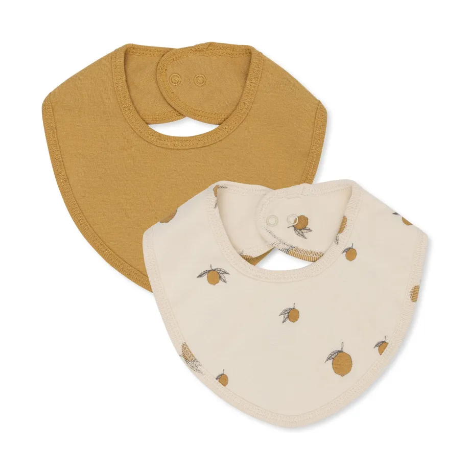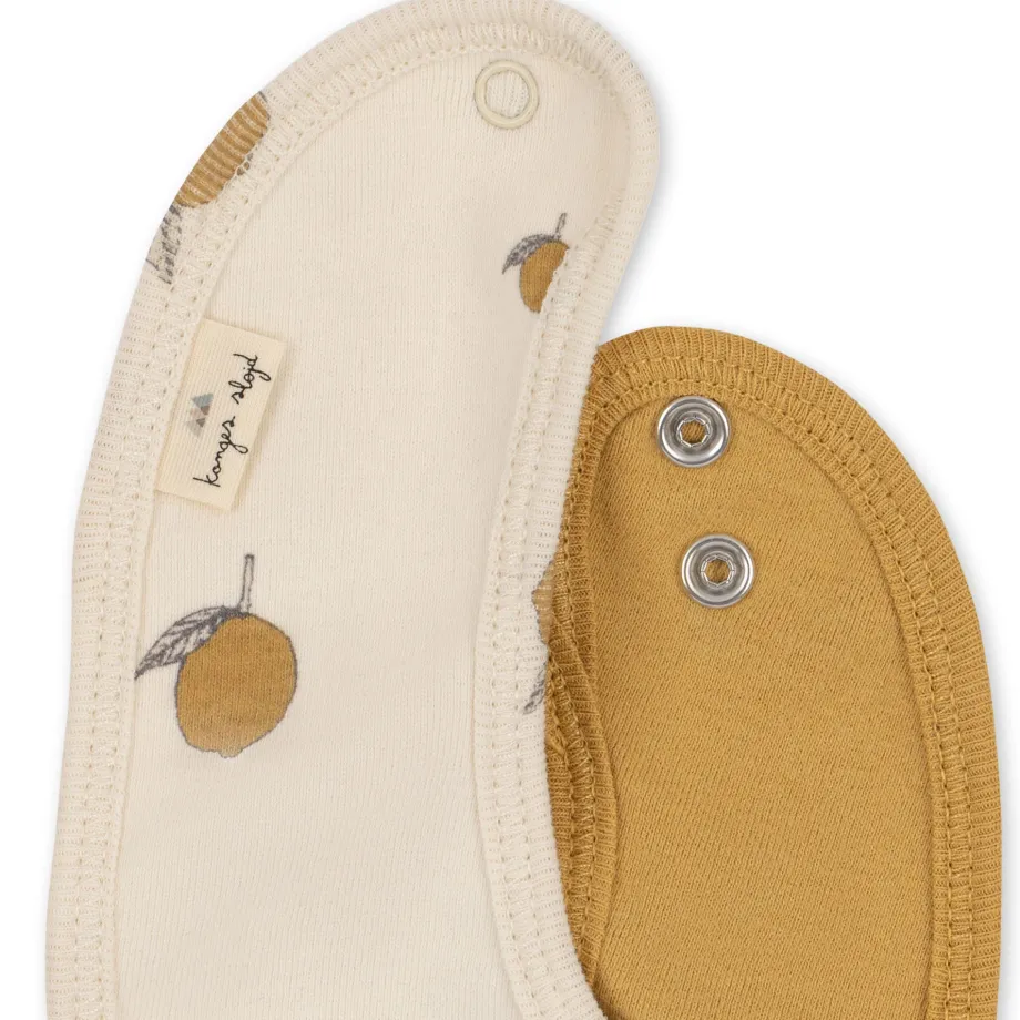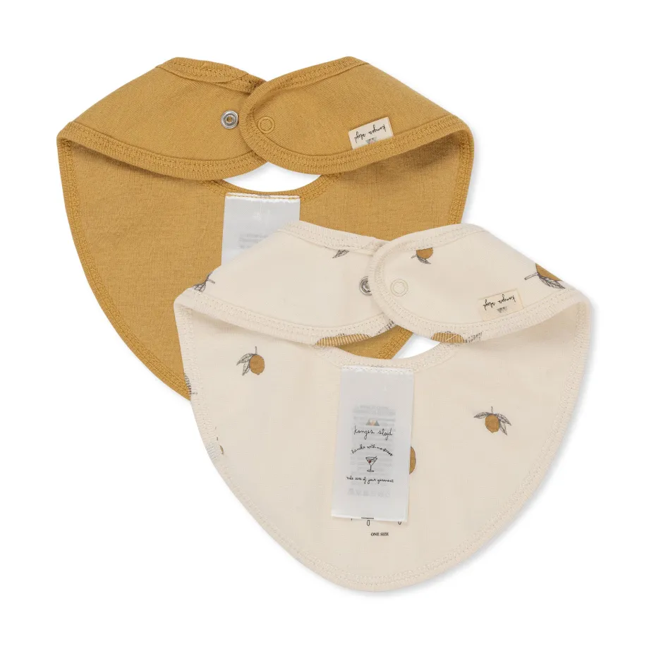 2-pak savlesmække. fremstillet i 95% økologisk bomuld og 5% elastan. Designet med en tynd foring af thermoplastic / polyurethan. I nakken er der 2 trykknapper. så savlesmækken kan