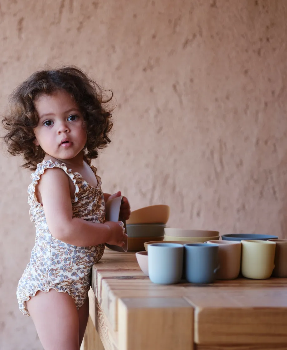 Kop- og tallerkensæt fremstillet af 100 % silikone. Tåler opvaskemaskine op til 100 °C. Tåler mikrobølgeovn. Temperatursikker: -40 °C til +230 °C ADVARSEL! Brug altid produktet u