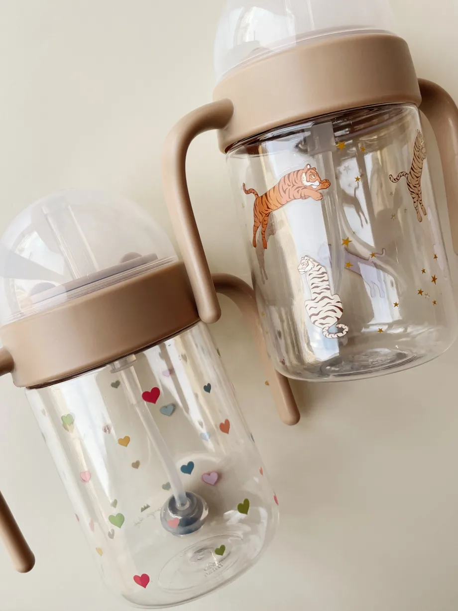 Drikkekop med sugerør og praktiske håndtag. Fremstillet af silikonepolypropylentritan. Ø: 7.9 cm x H: 15 cm x B: 15 cm. Kan rumme op til 330 ml. Fra 12 måneder.