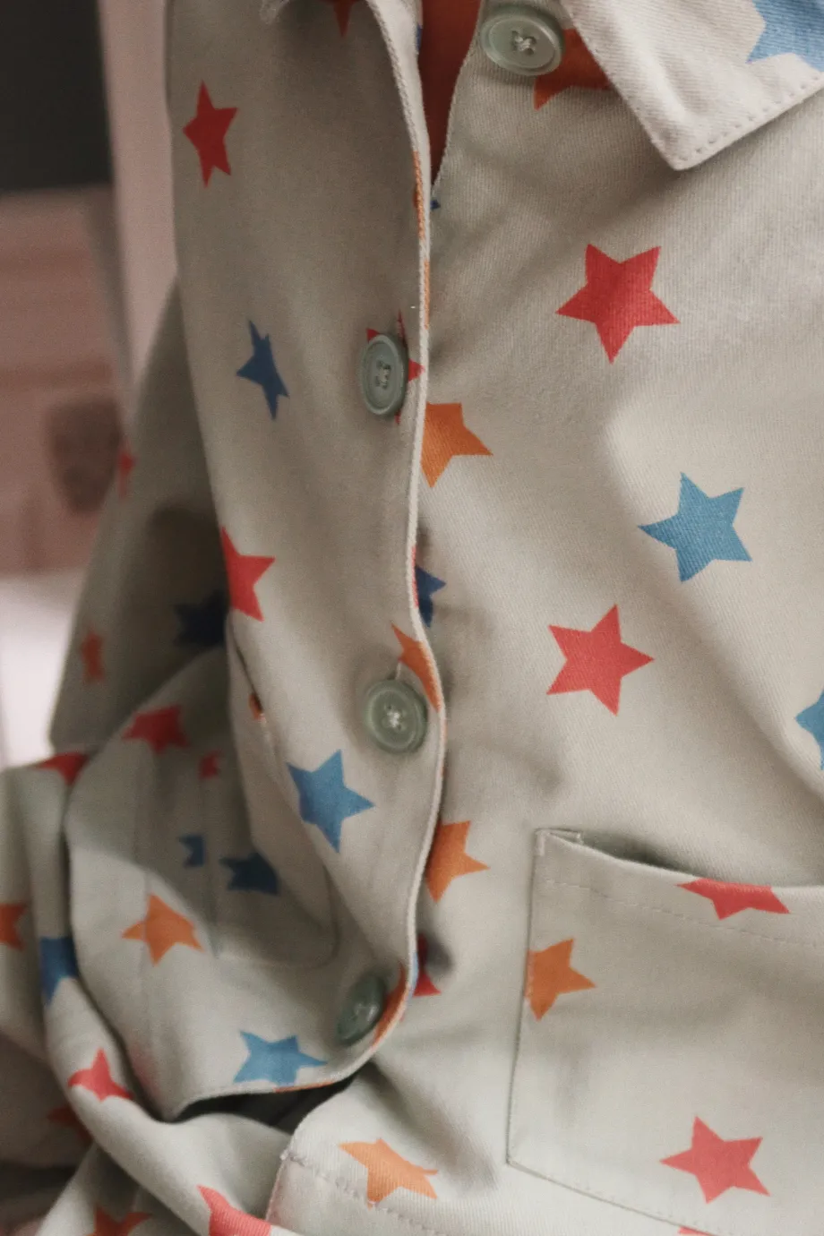 Jakke lavet i 100% økologisk bomuld i en lidt kraftigere lærredskvalitet. Designet med en klassisk krave. store knapper og to forlommer. GOTS. økologisk. certificeret af CU1094701