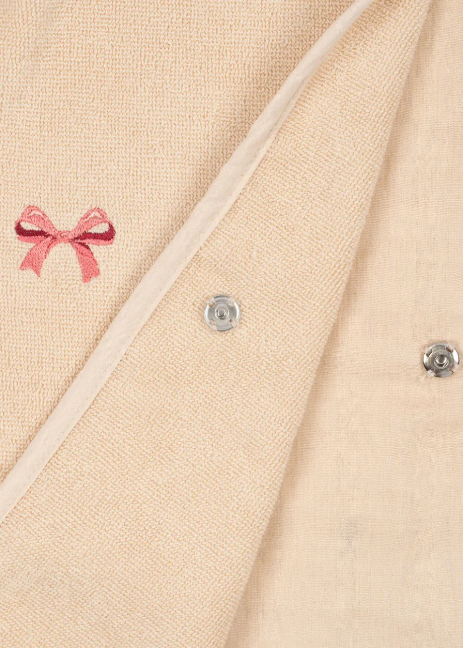 Not allowed for sale in the US Frottéponcho med hætte til sjov og komfort efter badet. Lavet af 100 % økologisk bomuld GOTS. økologisk. certificeret af CU1094701 Dette produkt
