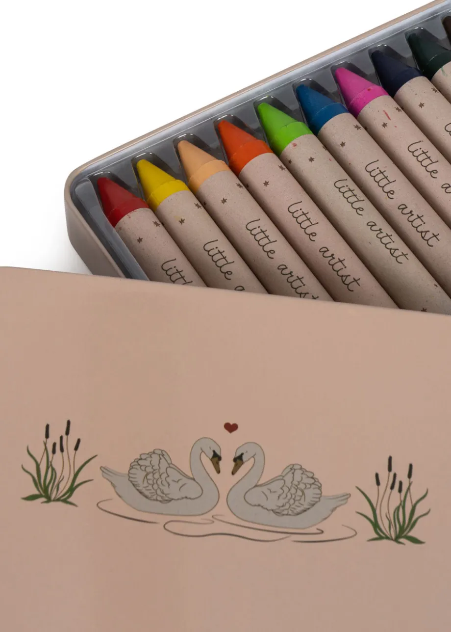 Farvestifter af bivoks er et naturligt alternativ til traditionelle paraffinbaserede farvestifter. Farvestifter af bivoks er robuste og holder længe. og bivoksen giver levende farv