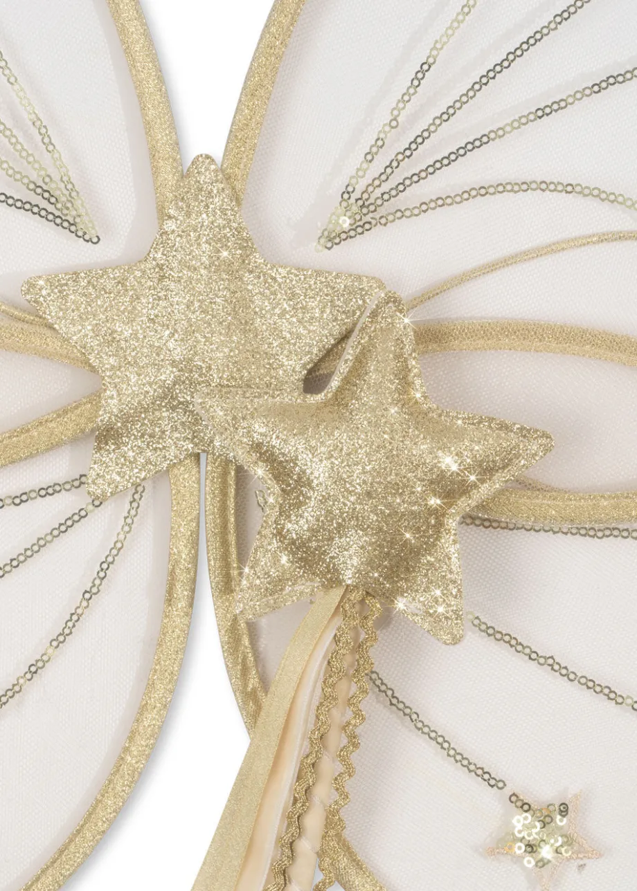 Fekostume med vinger og en tryllestav. så du kan sprede magi. H: 39.5 cm x B: 49 cm Lavet af 100 % PET og 100 % polyester med metaltråd ADVARSEL! KVÆLNINGSFARE – Små dele. Ikke