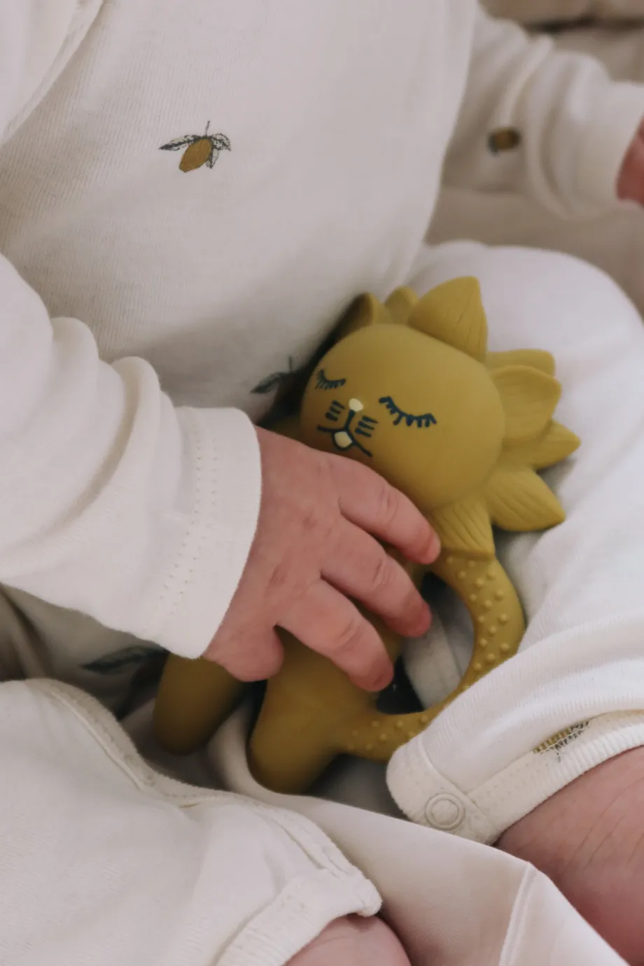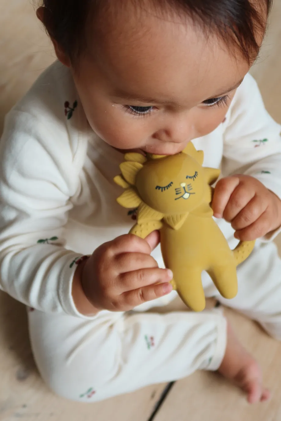 Søde dyr fremstillet i 100 % naturgummi til at berolige babyens ømme gummer. Hver tekstur på gummilegetøjet stimulerer barnets synssans. hørelse. lugtesans. berøring og smag. Gummi