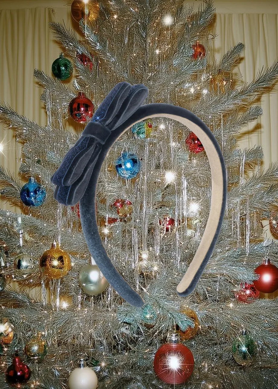 Hot Konges Sløjd Velvet Bow hårbøjle – navy blazer navyblazer