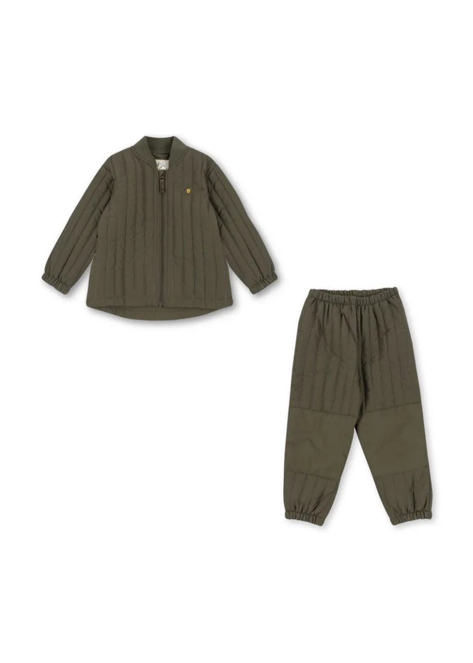 Let og varmt polstret sæt med termobukser og matchende jakke. Behandlet med et vandafvisende BIONIC-FINISH® ECO-lag til al slags vejr. Designet med en lige silhuet. der nemt kan bæ