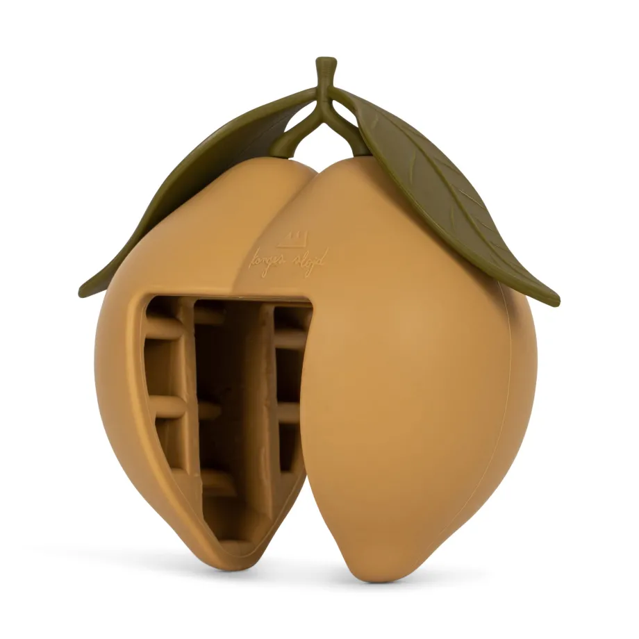 Citrondørstopper. Fremstillet af 100 % silikone. CE-testet efter europæisk standard EN-71-1. Velegnet fra +0 år. 3.8 cm. Vaskeanvisning: Vaskes i varmt sæbevand (maks. 30°C). Brug