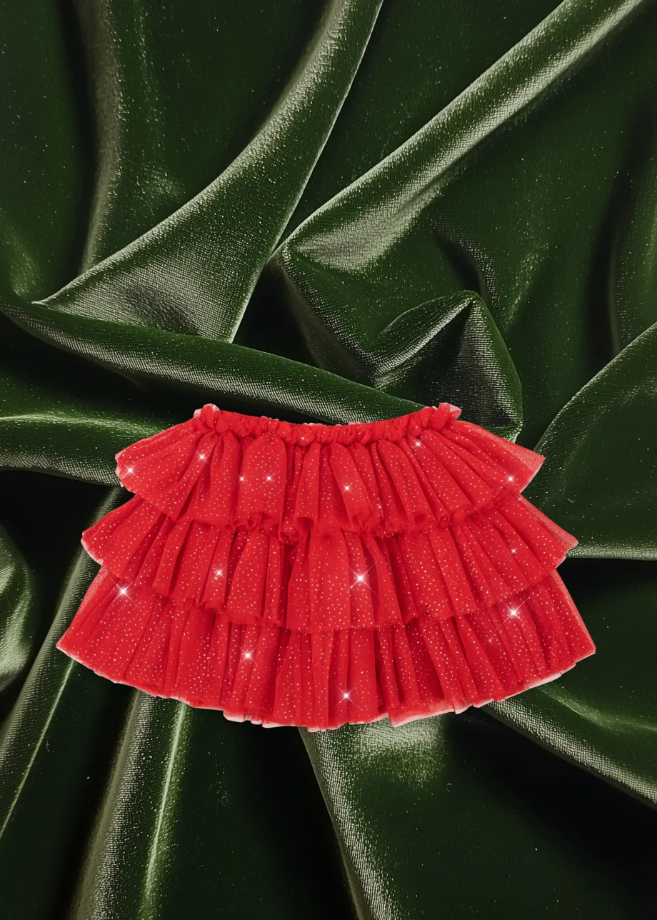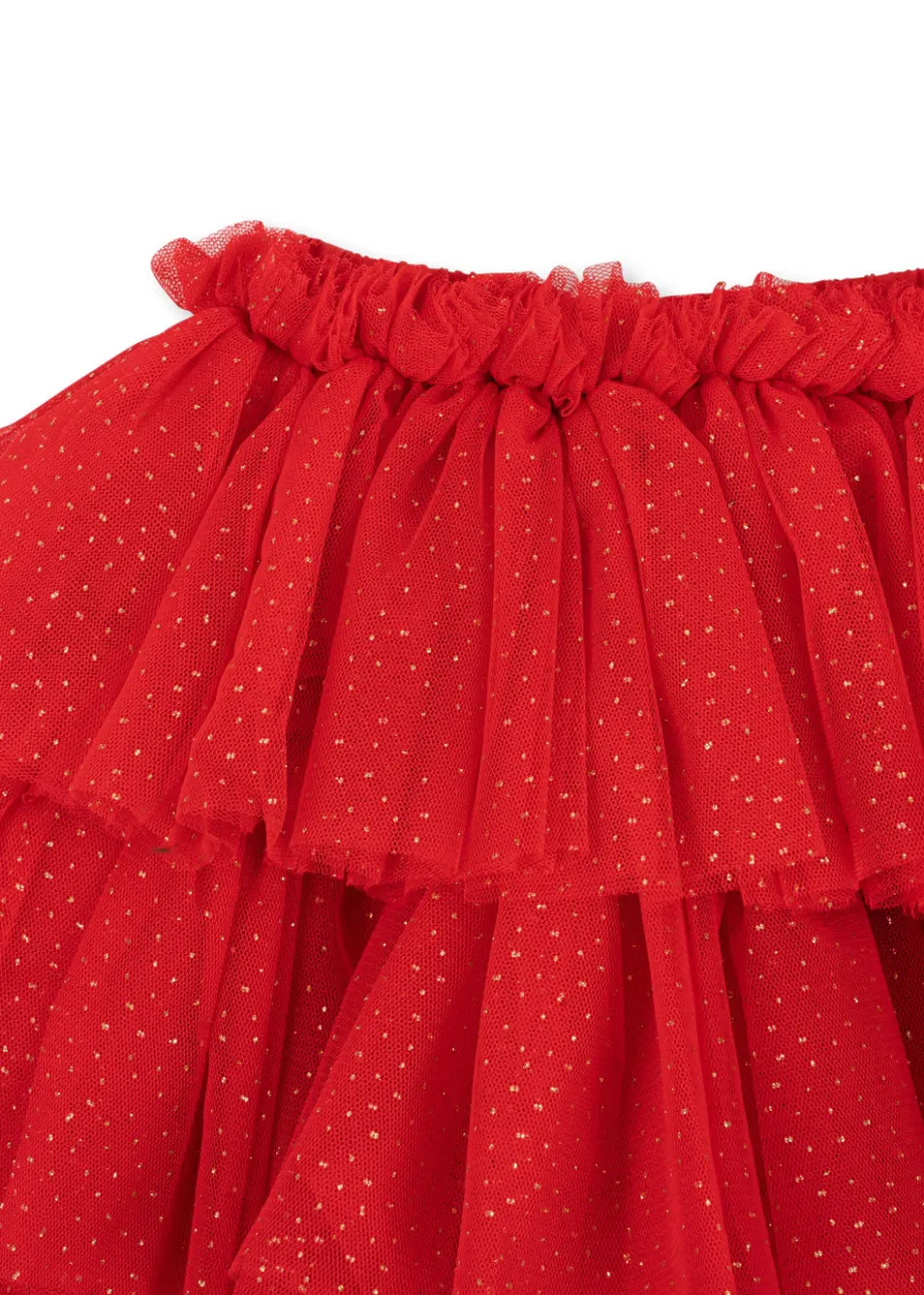 Festlig nederdel med snirklede detaljer. Med flere lag tyl og masser af elegant volumen. Lavet af 100 % genanvendt polyester med for af 100 % økologisk bomuld Dette produkt inde